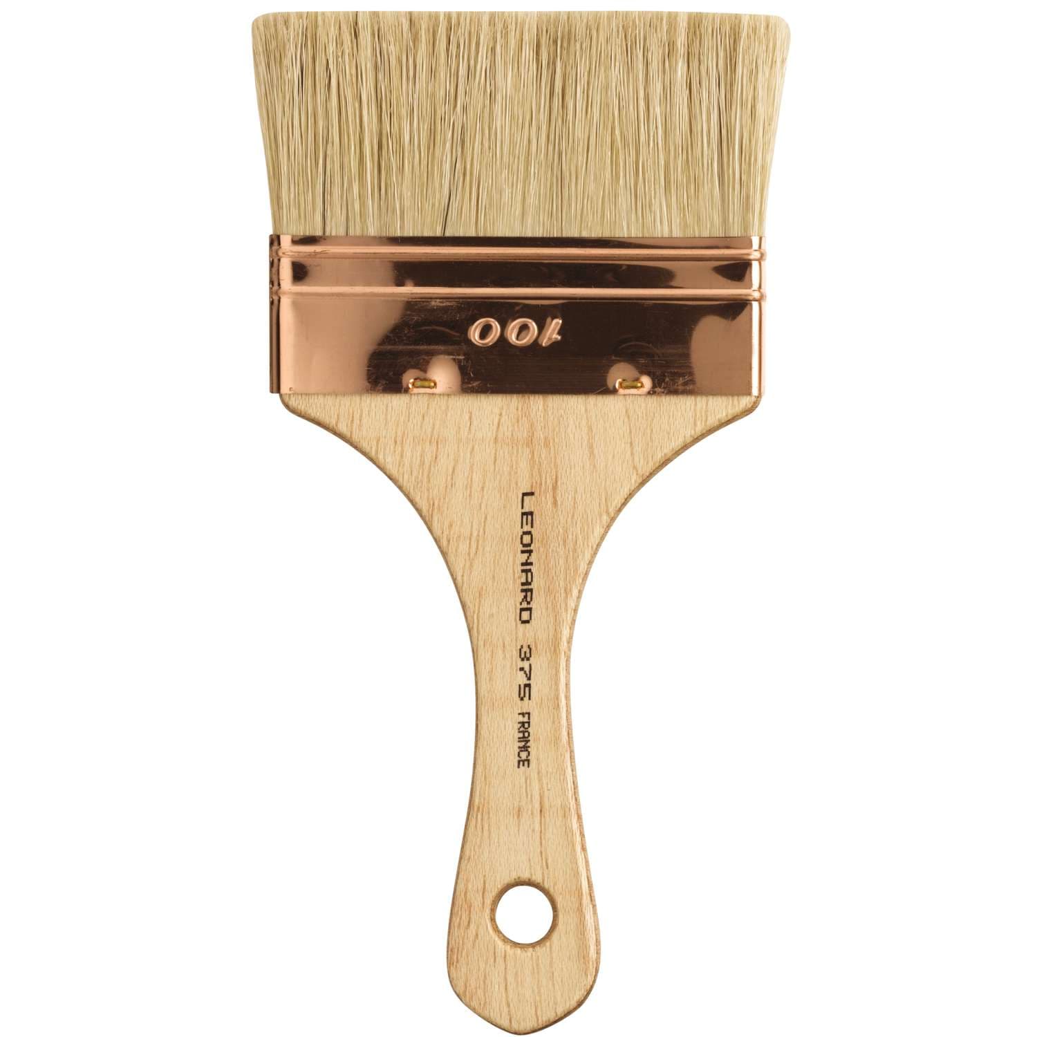 Der Léonard breiter Borstenpinsel mit weißen, flachen Naturborsten eignet sich zum Firnissen, Grundieren und flächigem Malen. Mit rohem, kurzen Stiel und Kupferzwinge.