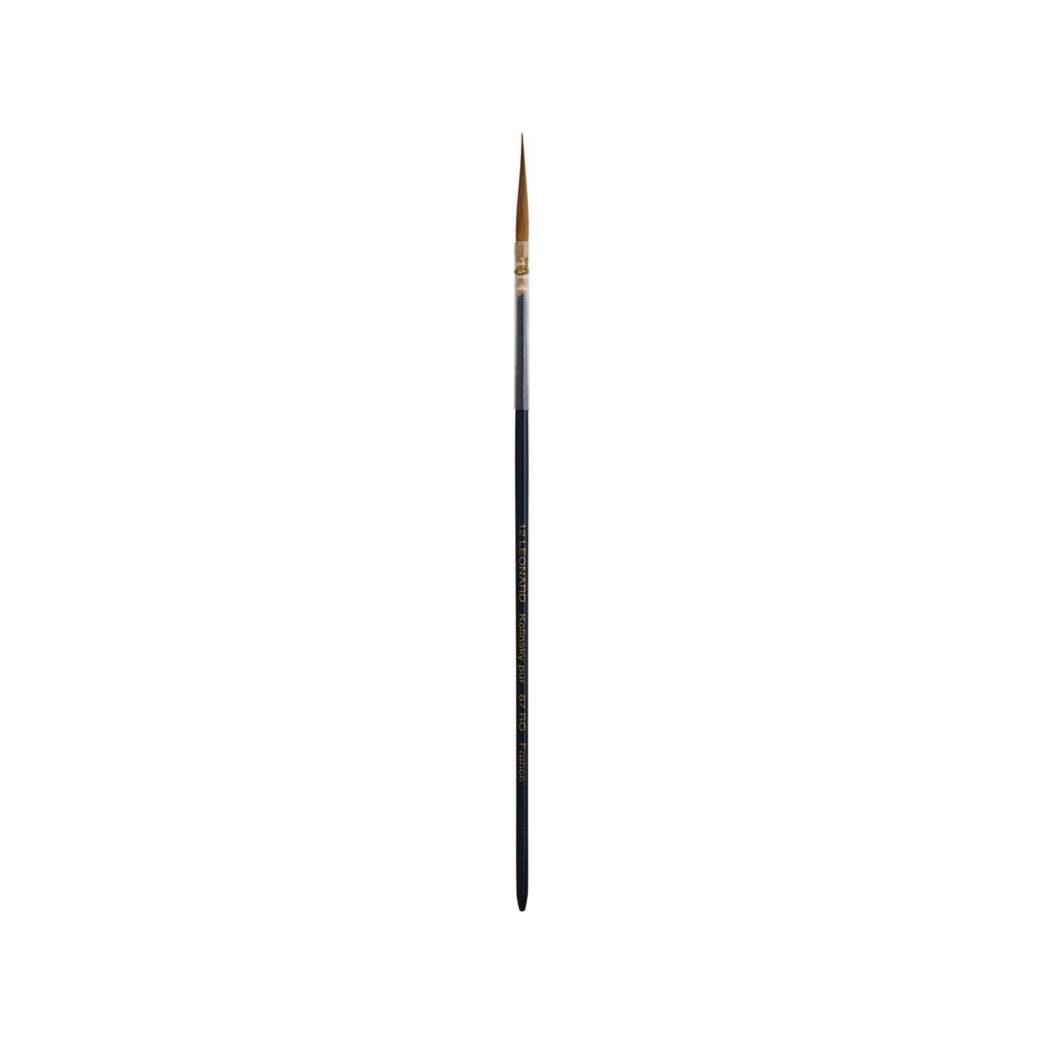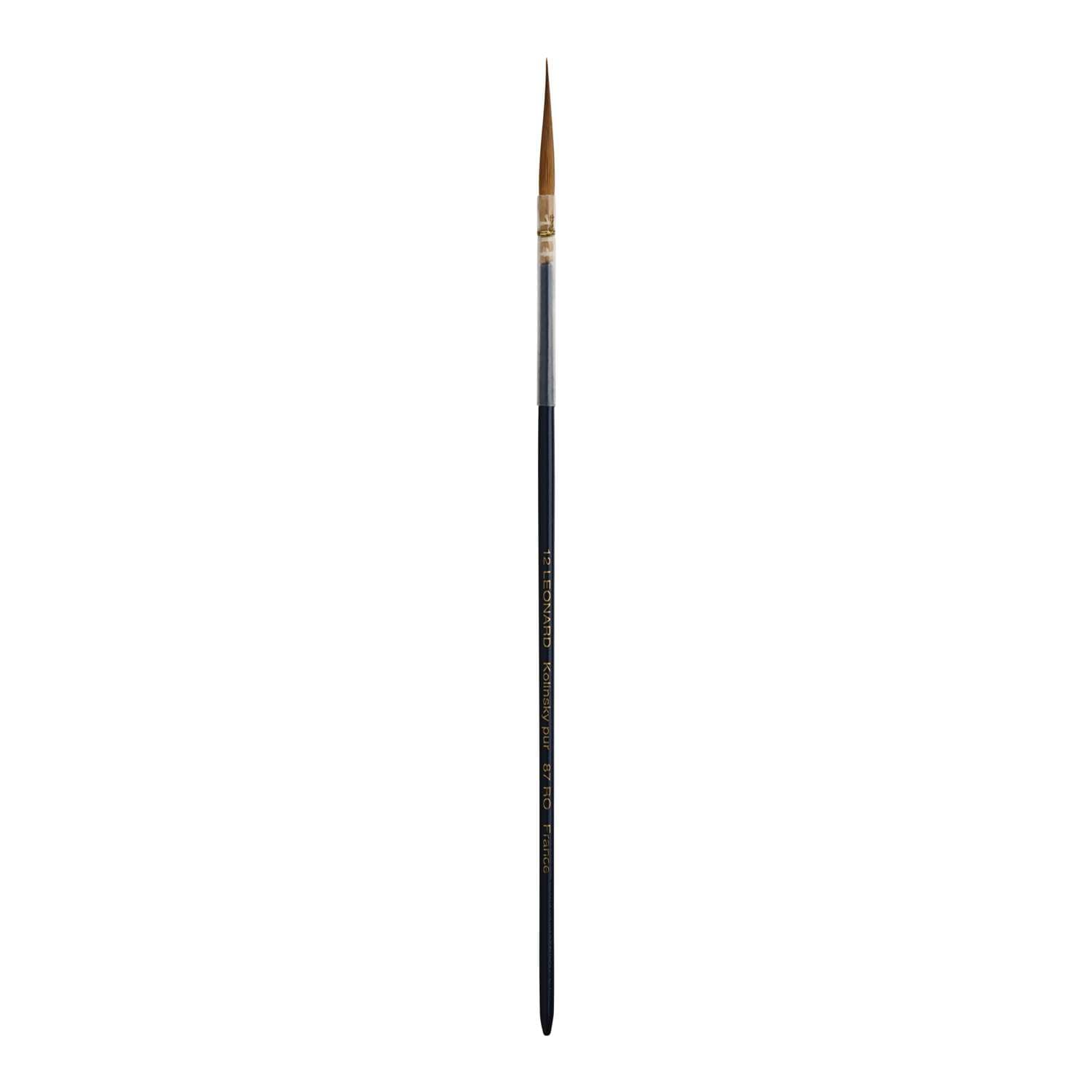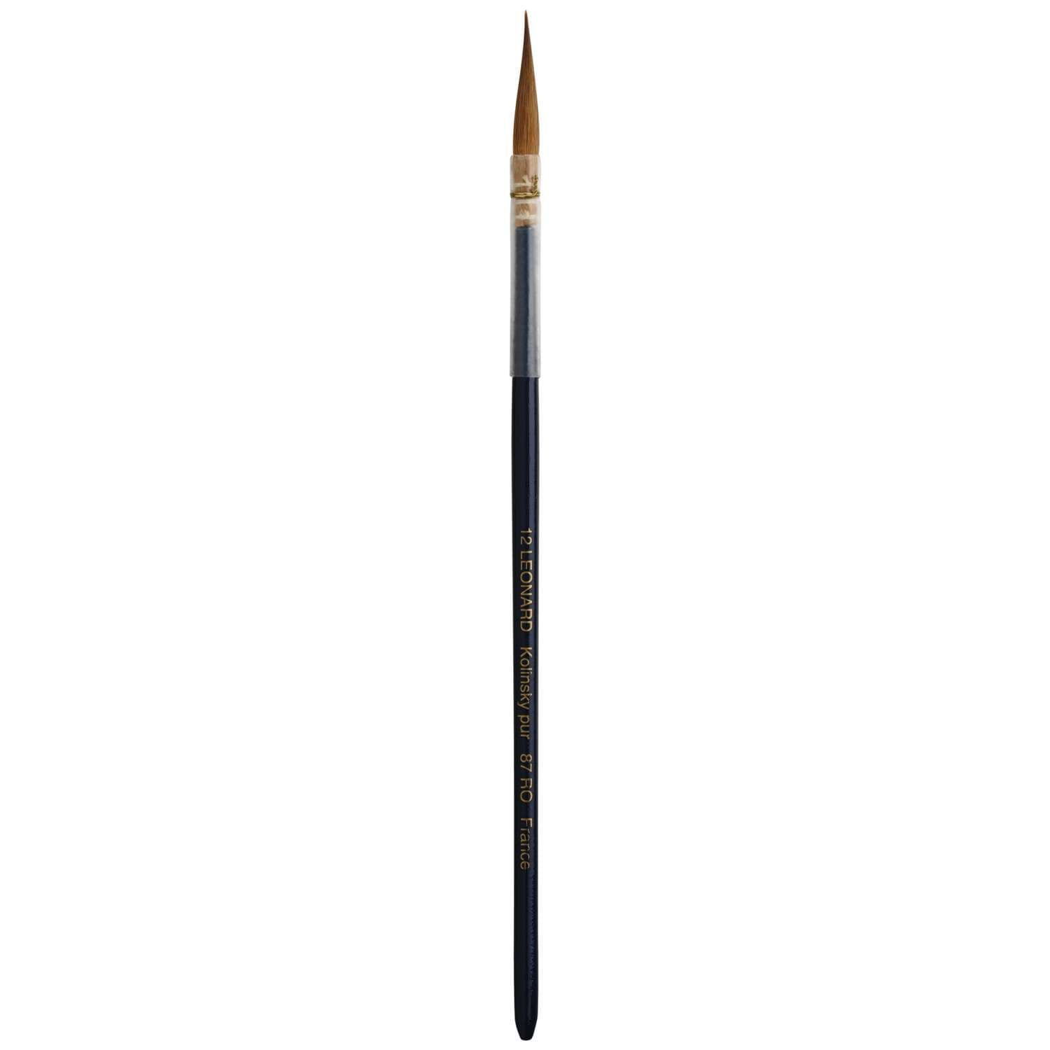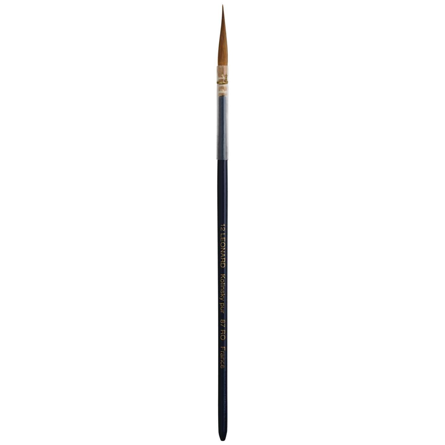 Léonard Porzellanmalpinsel Serie 87 RO mit spitzen Borsten aus Kolinsky Rotmarderhaaren. Gefaßt in Naturkielen mit blauem Stiel. Ideal für Dekorationsarbeiten an Keramik- und Porzellangeschirr.