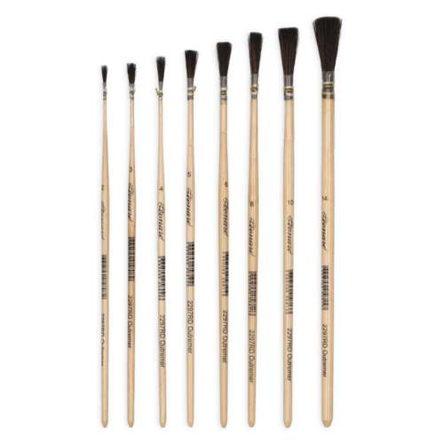 Die Léonard Porzellanmalpinsel Serie 2297RD sind speziell für die Keramik- und Porzellanmalerei entwickelt worden. Sie bestehen aus hochwertiger synthetischer Fehhaar-Imitation, die eine exzellente Farbaufnahme und -abgabe ermöglicht. Durch ihre hohe Elastizität und Geschmeidigkeit eignen sie sich ideal für feinste Ausbesserungs- und Glättungsarbeiten. Gleichzeitig sind sie hervorragend für präzise Linien, detaillierte Farbaufträge und weiche Übergänge in der Aquarellmalerei einsetzbar.