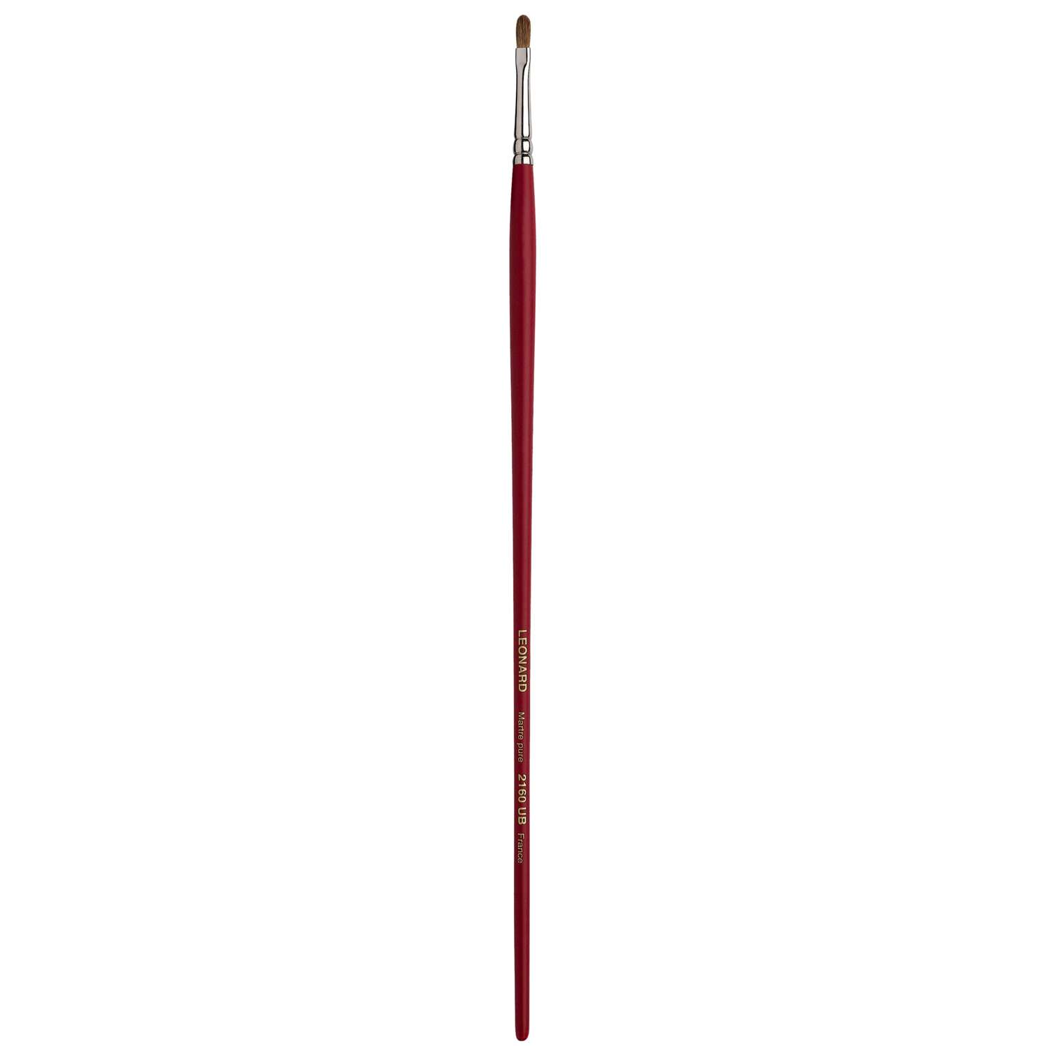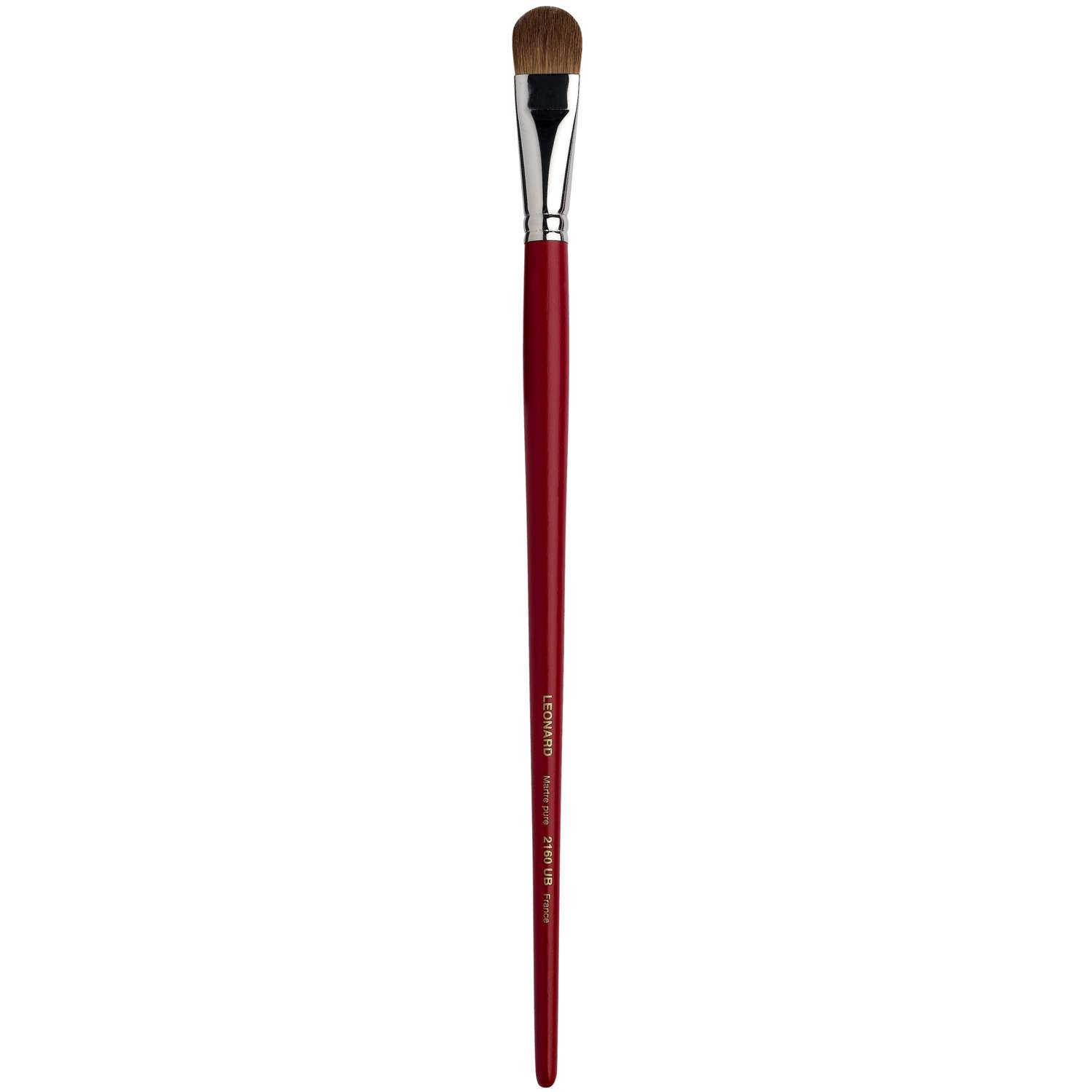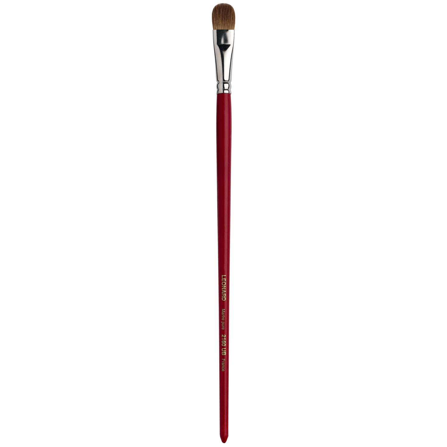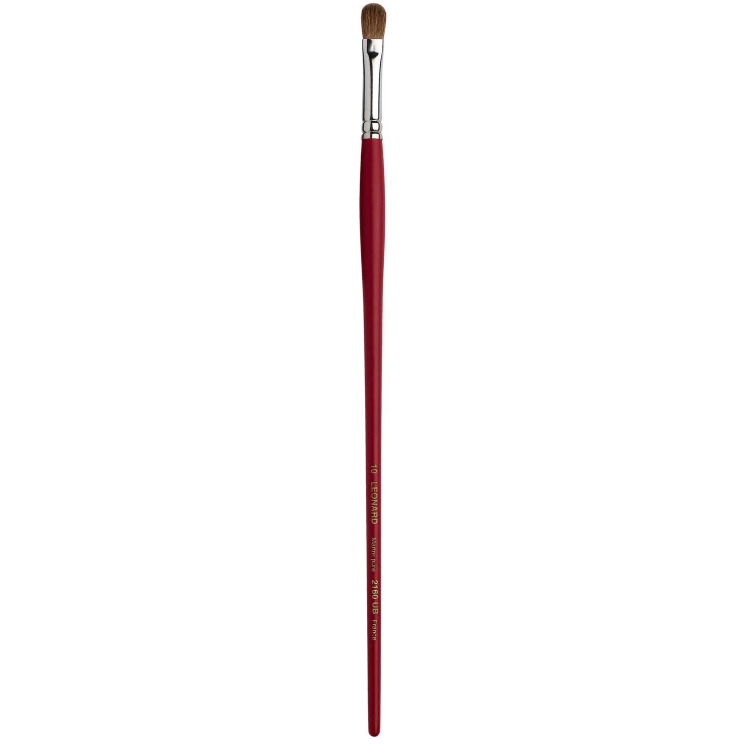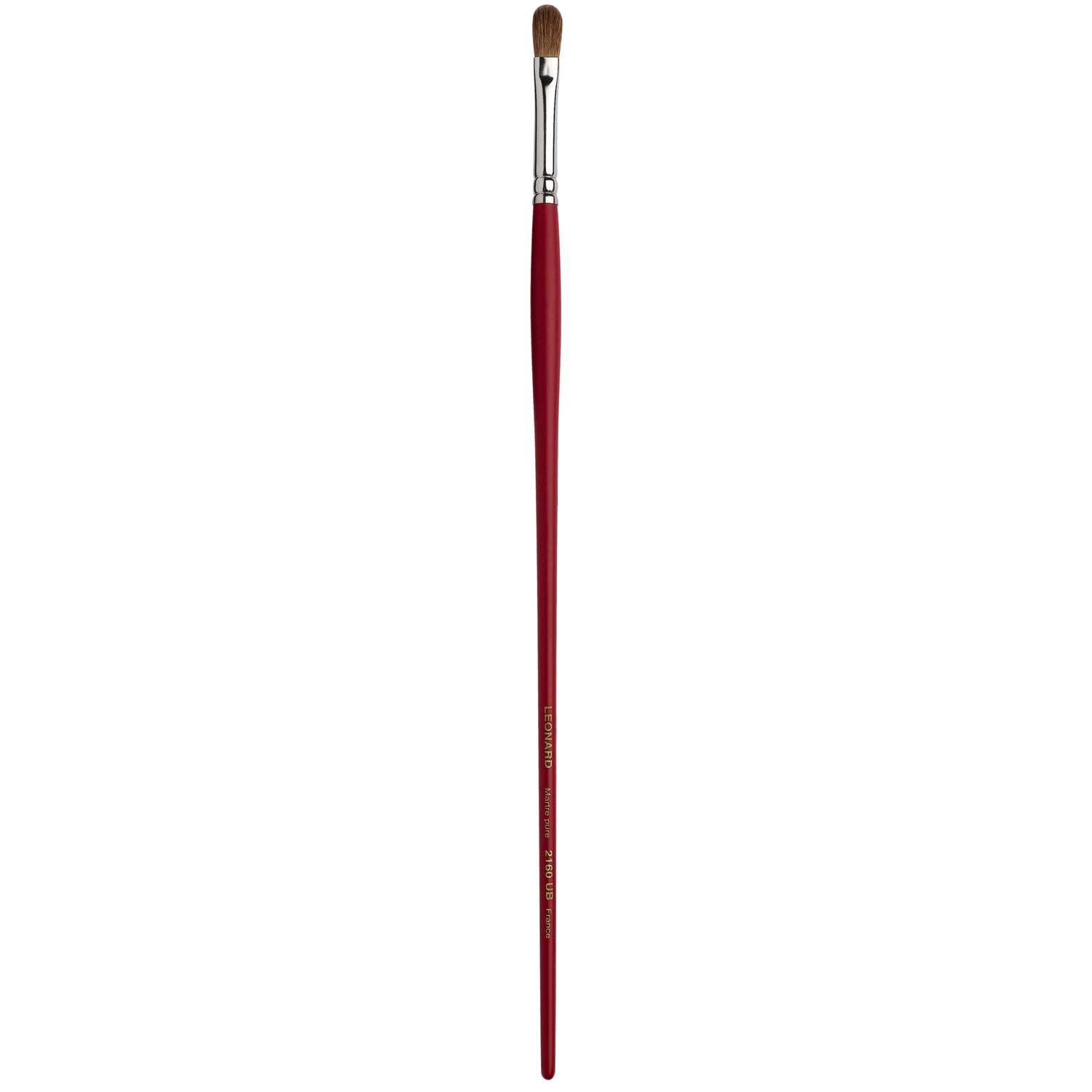 Katzenzungenpinsel aus dem Hause Léonard. Rotmarderhaare, Silberzwinge, langer, roter Stiel. Für die Öl- und Acrylmalerei. Ideal für Verläufe, Übermalungen und Lasuren. 12 Größen erhältlich. – Preis pro Stück.