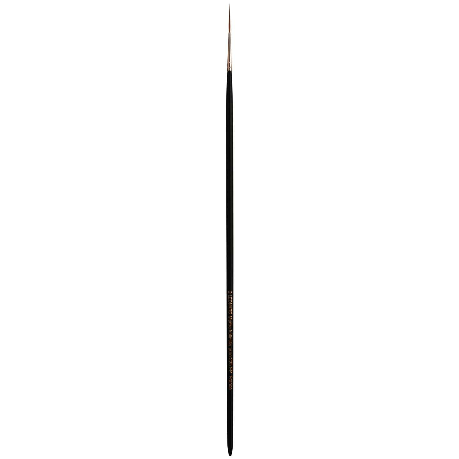 Schriftenpinsel zum Schriftschreiben und Schriftmalen. Ideal auch zum Ziehen feiner Linien und Ränder. Aus reinen, sehr langen Kolinsky Rotmarderhaaren, nahtloser Silberzwinge und langem schwarz lackiertem Stiel.