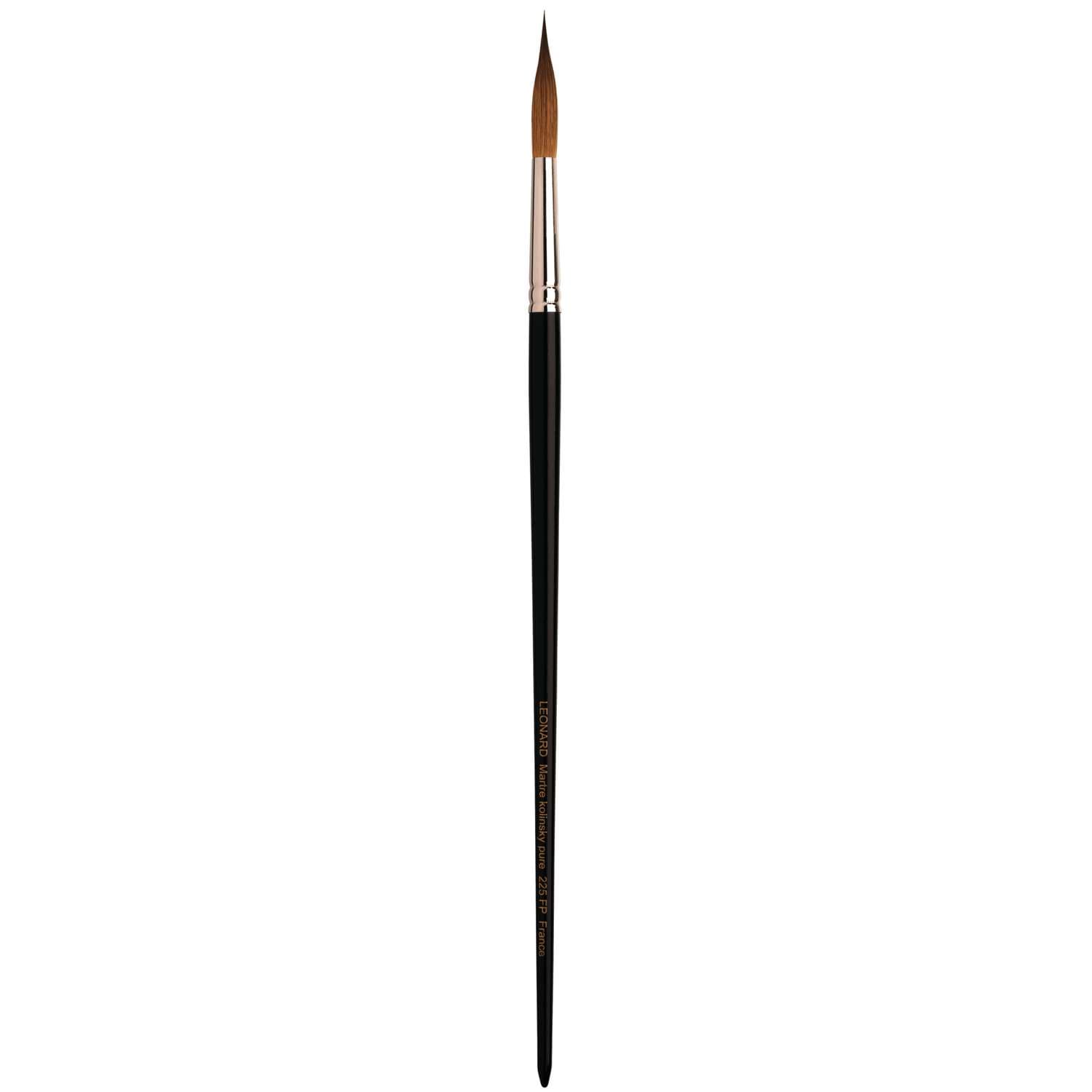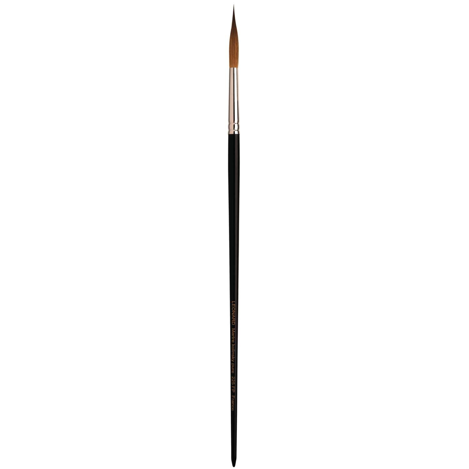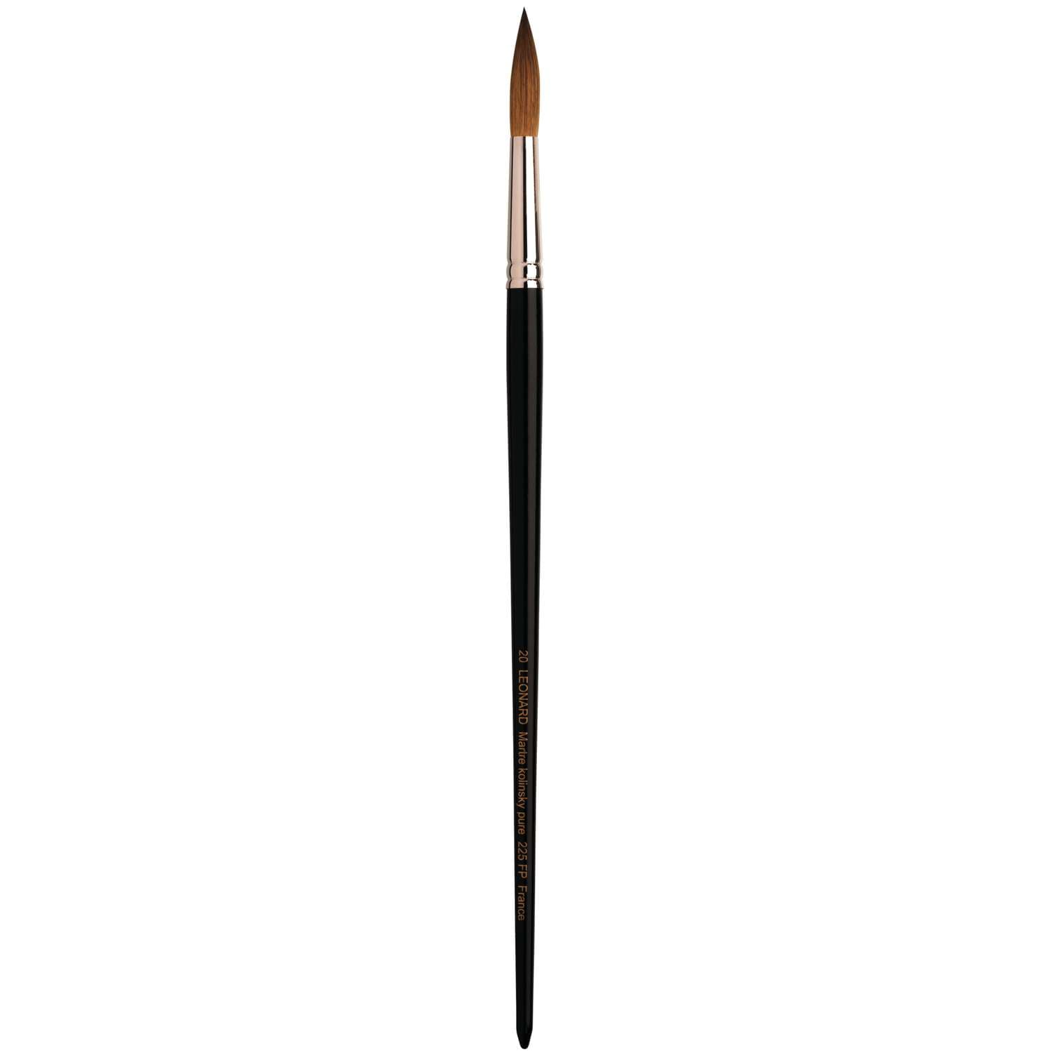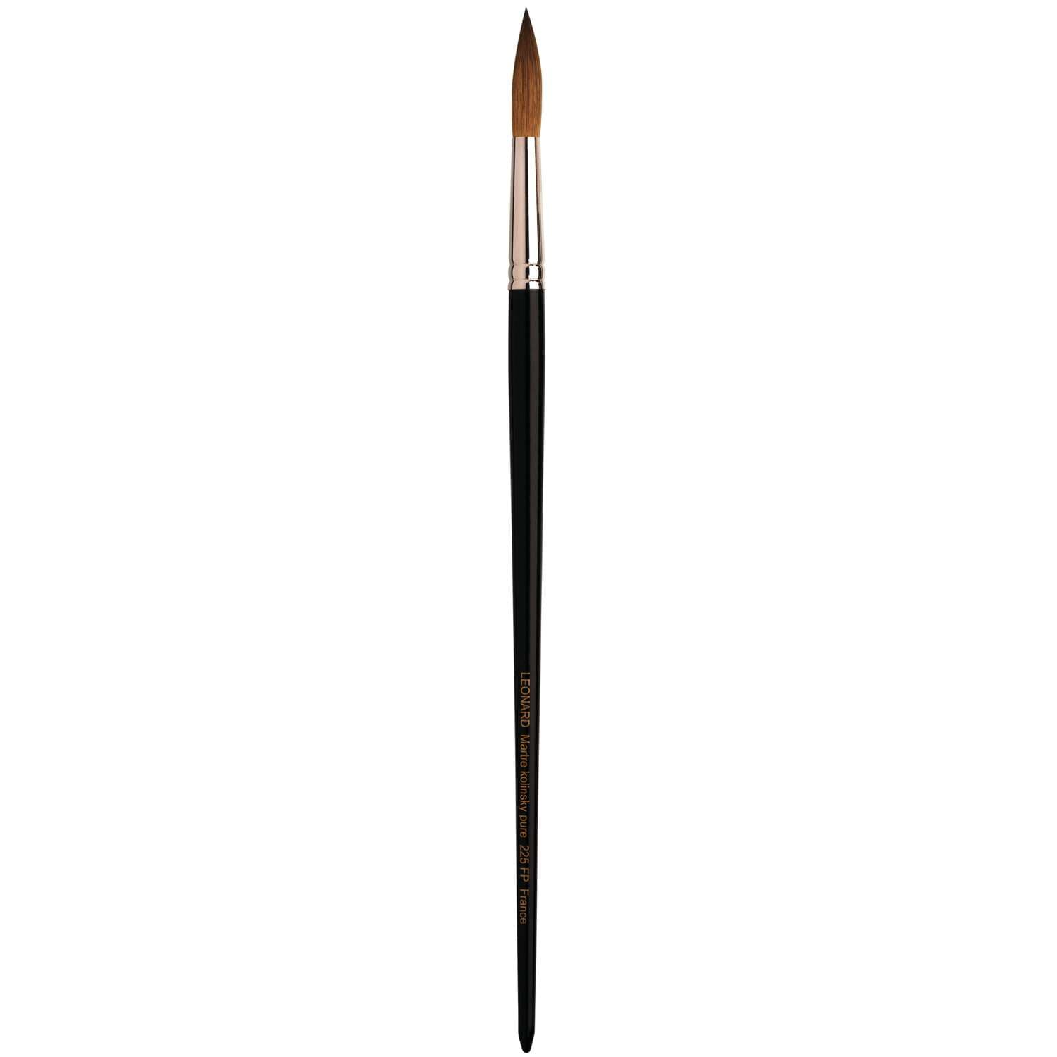 Léonard Schlepperpinsel Serie 225FP ist ein Schriftenpinsel zum Schriftschreiben und Schriftmalen. Ideal auch zum Ziehen feiner Linien und Ränder. Aus reinen, sehr langen Kolinsky Rotmarderhaaren, nahtloser Silberzwinge und langem schwarz lackiertem Stiel.
