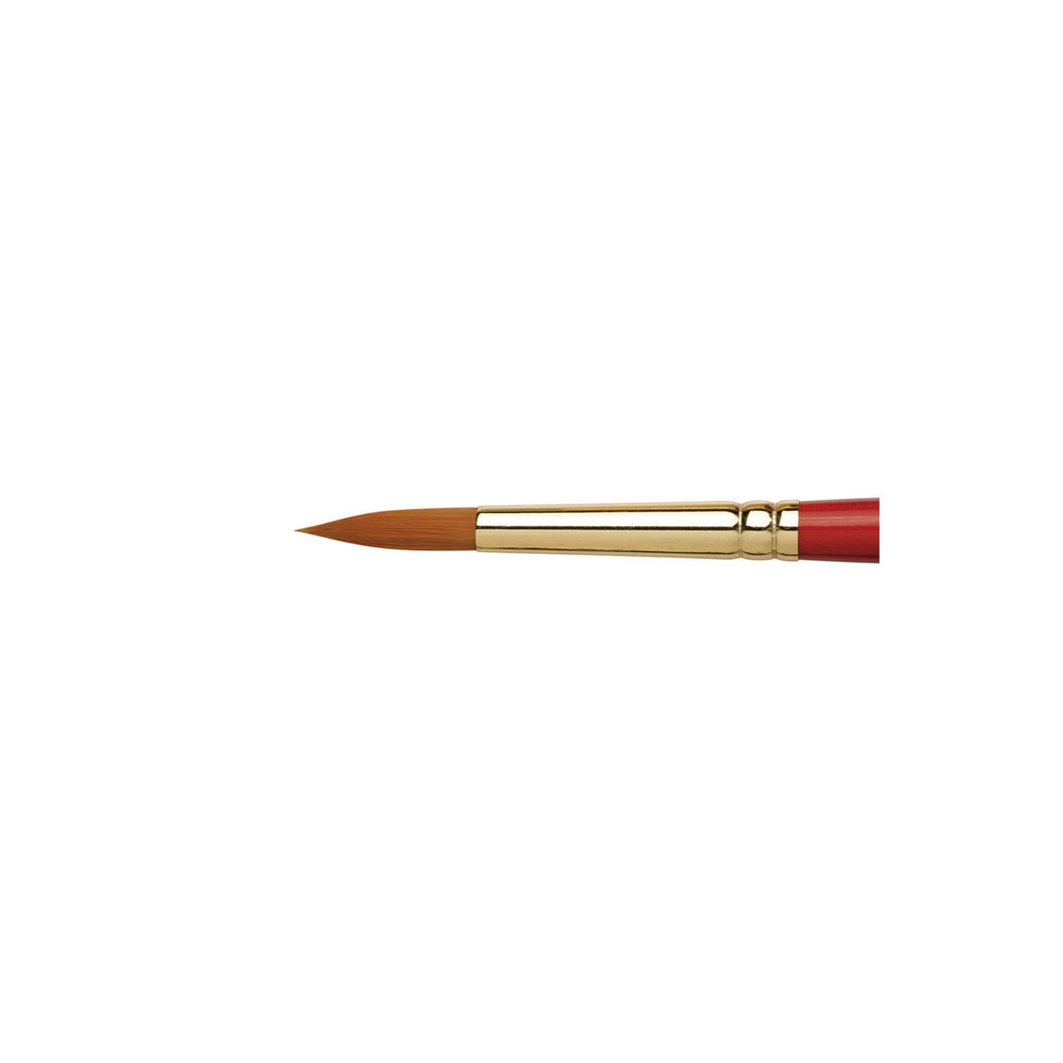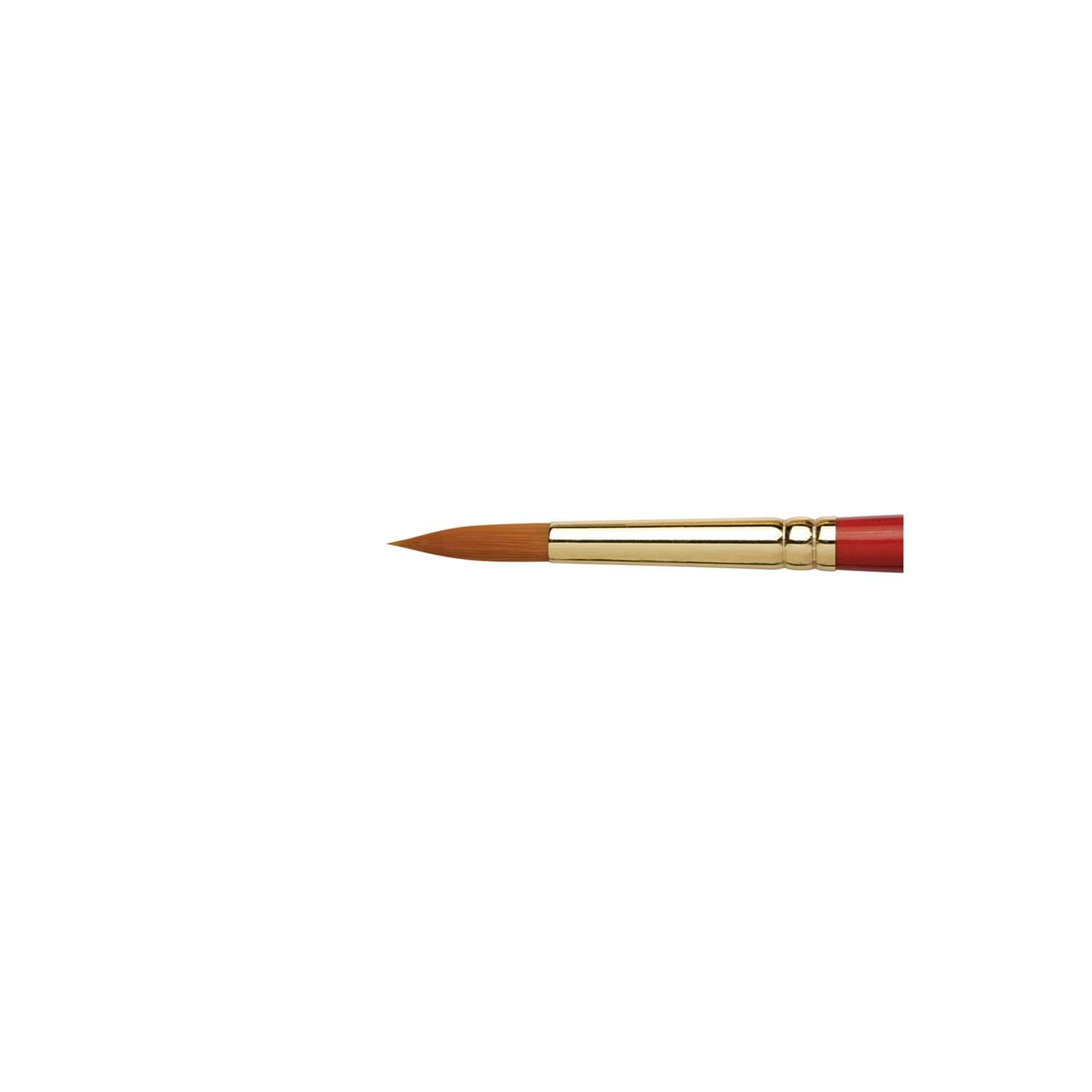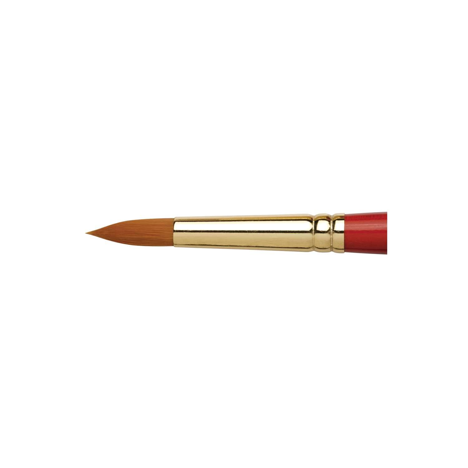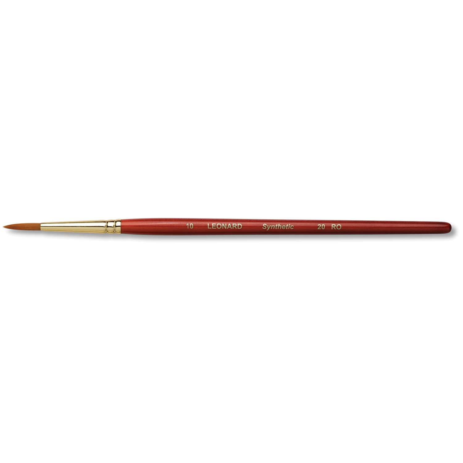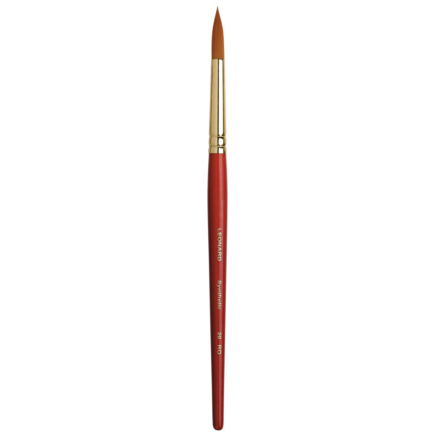 Léonard Synthetikpinsel Serie 20: Spitze aus goldfarbenen Synthetikfasern, Zwinge aus vernickeltem Alu und kurzer kirschroter Stiel. Ideale Schul-Pinsel für die Malerei mit Acryl, Aquarell.