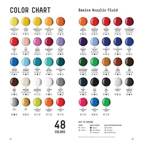 Liquitex® verwendet in den BASICS™- und BASICS™ FLUID-Acrylfarben die gleichen Qualitätspigmente wie in den PROFESSIONAL HEAVY BODY- und SOFT BODY-Acrylfarben. Dadurch verfügen die BASICS™-Serien über die gleichen hervorragenden Eigenschaften und leuchtenden Farben. Bei der Herstellung wird lediglich weniger Pigment verwendet, wodurch diese Farben erschwinglich bleiben.