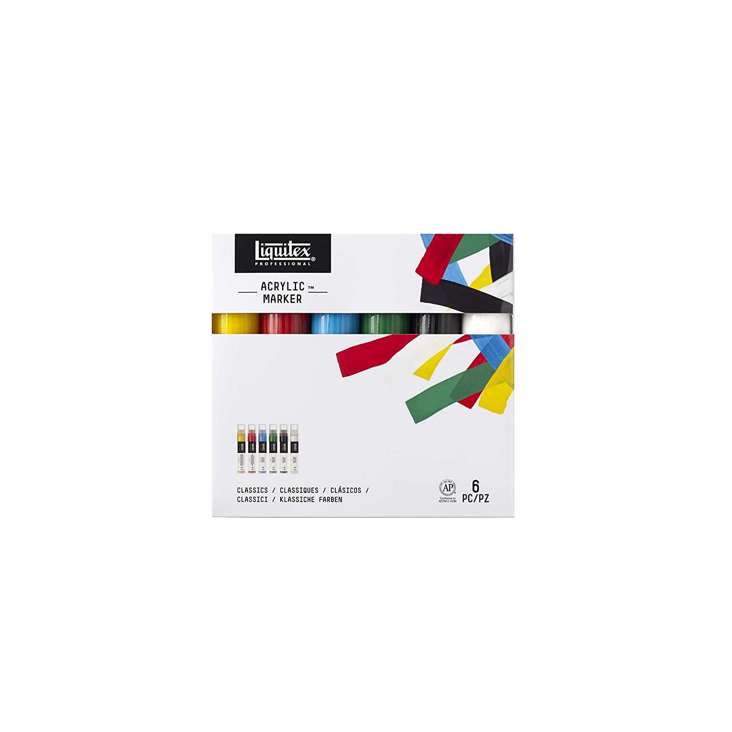Das Liquitex® Paint Marker 6er Set ist mit feinen oder breiten Spitzen erhältlich und beinhaltet folgende Farbtöne: