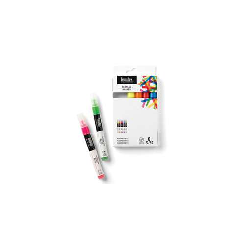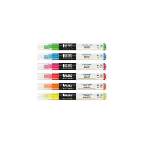 Das Liquitex® Paint Marker 6er Set mit fluoreszierenden Farben ist mit feinen oder breiten Spitzen erhältlich und beinhaltet folgende Farbtöne: