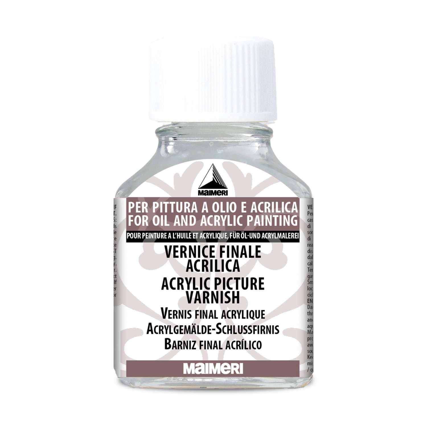 Der MAIMERI Acrylgemälde-Schlussfirnis ist ein transparenter Schutzfirnis für Acrylmalerei. Er bildet nach dem Trocknen einen klaren, widerstandsfähigen Film, der die Farboberfläche vor Staub, Schmutz und Feuchtigkeit schützt. Gleichzeitig verstärkt er die Farbtöne, erhält die Brillanz und sorgt für eine gleichmäßige Oberflächenwirkung. Der Firnis trocknet farblos auf, vergilbt nicht und bewahrt die ursprüngliche Leuchtkraft der Acrylfarben. Er kann sowohl auf Leinwand als auch auf Holz, Papier oder anderen Malgründen eingesetzt werden. Durch seine einfache Anwendung ist er ein unverzichtbares Hilfsmittel für Künstler, die ihre Acrylwerke dauerhaft konservieren und präsentieren möchten.