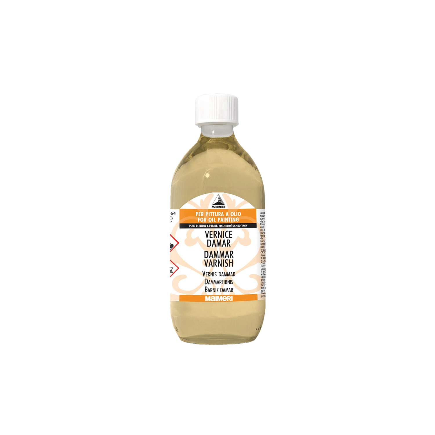 Der MAIMERI Dammarfirnis ist ein traditioneller Schlussfirnis für die Ölmalerei. Er basiert auf Naturharz Dammar, das in Terpentin gelöst wird, und verleiht Gemälden nach dem Trocknen einen gleichmäßigen Glanz. Der Firnis intensiviert die Farbtöne, erhöht die Tiefenwirkung und schützt die Oberfläche vor Staub, Schmutz und Feuchtigkeit. Er zeichnet sich durch eine transparente bis leicht gelbliche Tönung aus und bringt die Leuchtkraft der Farben zur Geltung. Als reversibler Firnis kann er bei Bedarf mit Terpentin wieder entfernt werden. Wie alle Dammarfirnisse neigt er im Laufe der Zeit leicht zum Vergilben. Für ein optimales Ergebnis sollte der Auftrag erst erfolgen, wenn das Gemälde vollständig durchgetrocknet ist.