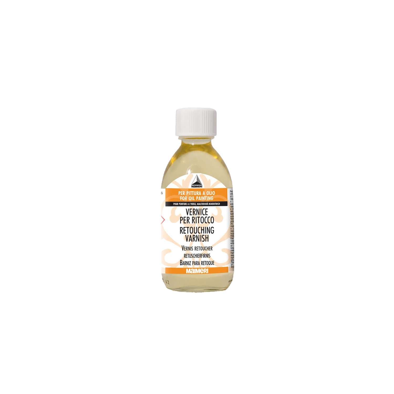 Der MAIMERI Retuschierfirnis ist ein leichter Schutzfirnis für die Ölmalerei. Er wird eingesetzt, um matte oder ungleichmäßig getrocknete Stellen während des Malprozesses auszugleichen und die Farbwirkung zu vereinheitlichen. Der Firnis basiert auf Ketonharz in Verbindung mit Terpentinersatz und Petroleumessenz. Er trocknet in mittlerer Zeit, verleiht dem Farbauftrag eine gleichmäßige Oberfläche und bringt die Farbtöne wieder zum Leuchten. Der Retuschierfirnis wird meist als Zwischenschicht verwendet, wenn ein Gemälde noch nicht vollständig abgeschlossen ist, und dient als Vorbereitung für den späteren Schlussfirnis.