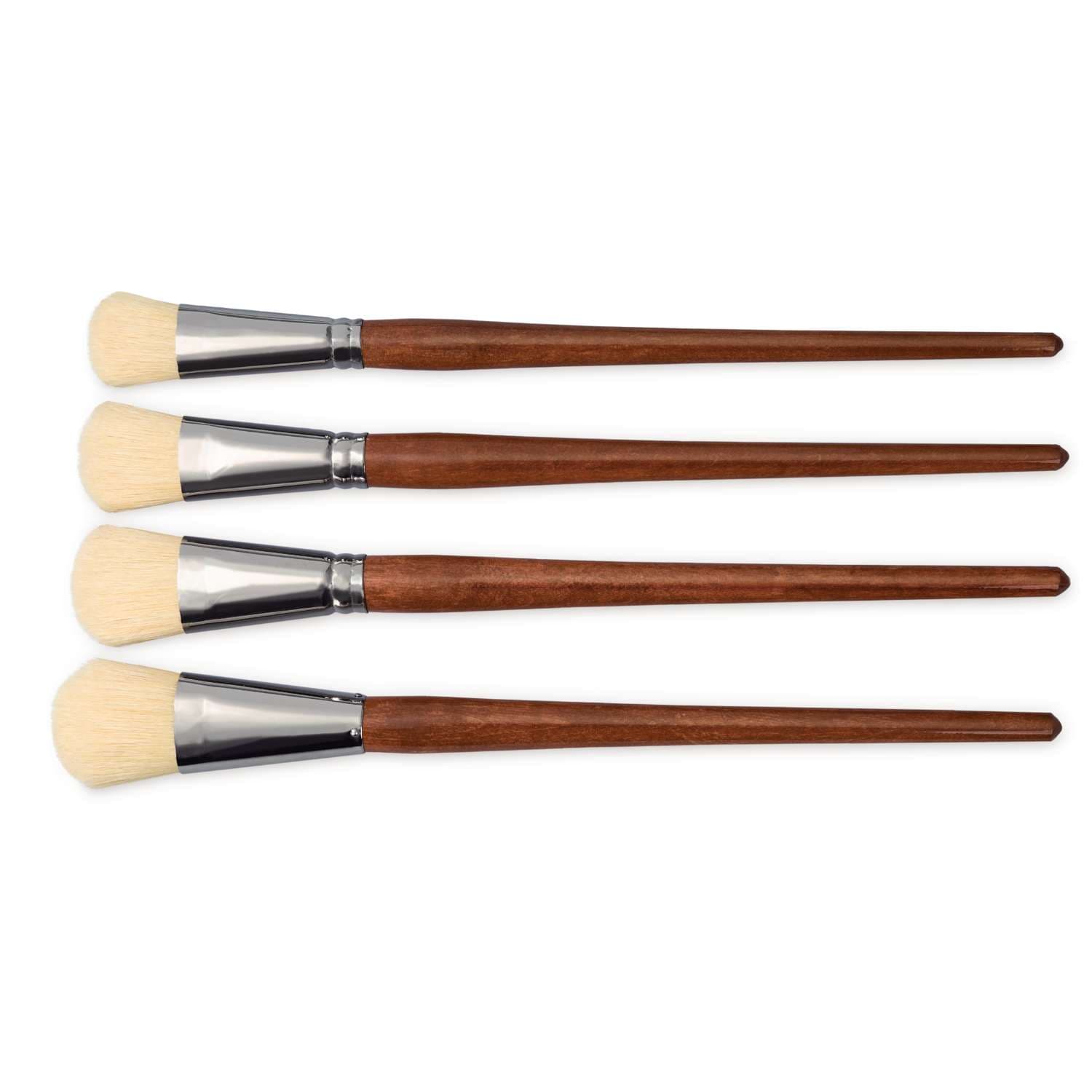Großer, ovaler Borstenpinsel. Stiele rotbraun lackiert. Durch die ovale Form hat der Pinsel die ideale Form für Verläufe. Gut geeignet für die Granuliertechnik.