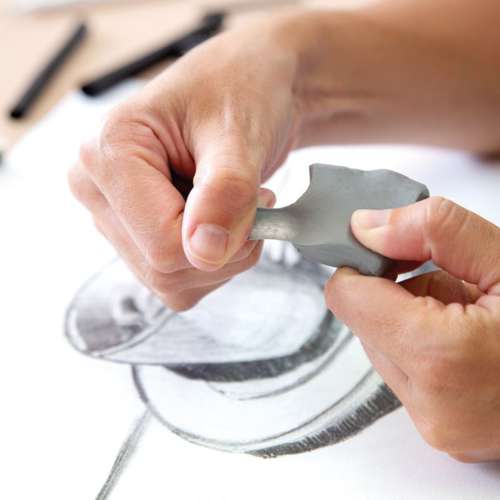 Ideal für die Bildende Kunst, eignet sich der Knetgummi perfekt zum gezielten Aufhellen von Linien, Herausarbeiten von Lichtreflexen oder zum kompletten Radieren. Vor der Anwendung einfach ein kleines Stück abtrennen, in die gewünschte Form bringen und sanft auf die zu entfernenden Stellen tupfen.