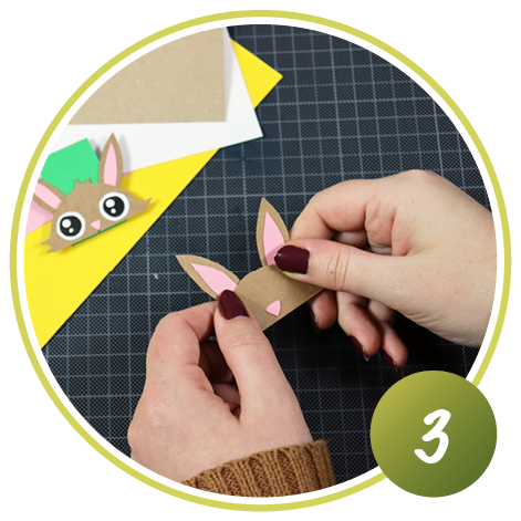 Aus dem rosafarbenen Papier schneiden Sie das Innere der Ohren und die Nase aus. Zwei kleine Kreise aus weissem Papier werden die Augen.