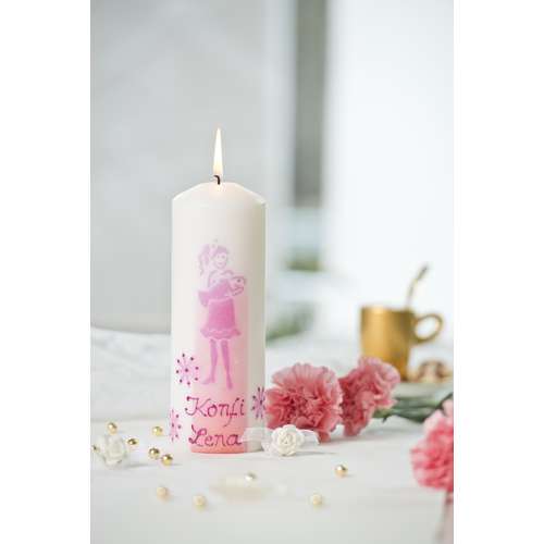 Schablonenmotive - Fixieren Sie eine beliebige Schablone auf der Klarsichtfolie und überziehen Sie diese mit Hilfe eines Spachtels mit der Wachsmalfarbe. Entfernen Sie anschließend die Schablone, lassen Sie das Motiv vollständig trocknen und überziehen Sie es anschließend komplett mit einer zweiten Farbe. Nach 4 - 5 Stunden Trocknungszeit ist die Wachsplatte fertig und kann von der Folie abgezogen werden. Entsprechend der Kerzengröße in Form geschnitten, wird die Wachsplatte nun auf die Kerze geklebt.