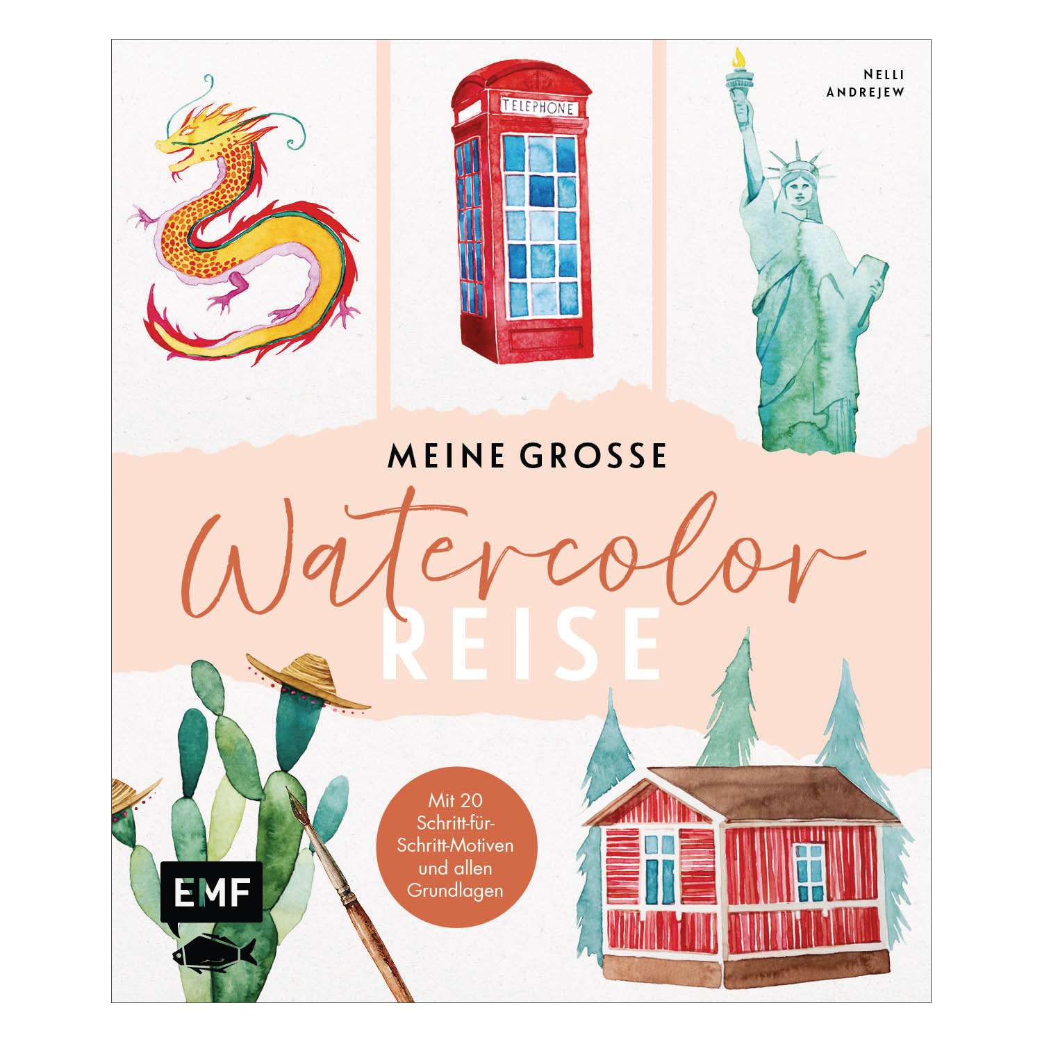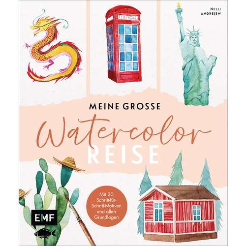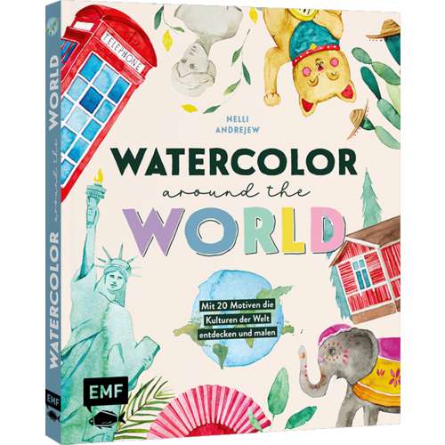Begeben Sie sich auf eine große Watercolor-Reise! Entdecken Sie mit 20 einzigartigen Motiven beliebte Wahrzeichen, ikonische Architektur und exotische Tiere aus allen Erdteilen. Der Eiffelturm, bunte Jaipur-Elefanten und japanische Winkekatzen verzaubern und entführen Sie in die entlegensten Winkel Asiens, Europas, Ozeaniens und zu vielen weiteren Orten. Ausgestattet mit allen wichtigen Grundlagen, Techniken und Materialien können sowohl Anfänger*innen als auch Fortgeschrittene direkt mit ihrer Watercolor-Weltreise starten.