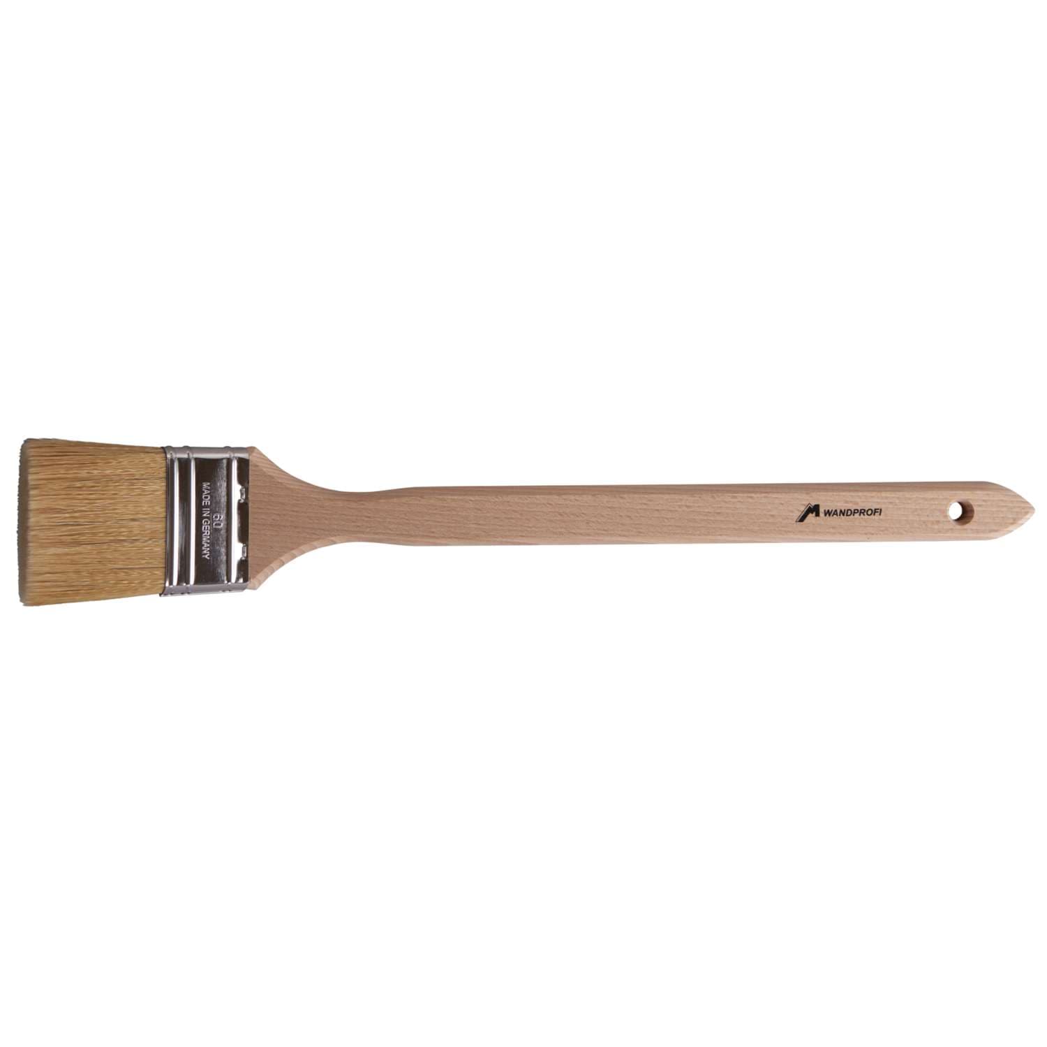 Der Mesko Fassadenstreicher ähnelt einem Heizkörperpinsel mit dem Unterschied: die Zwinge ist breiter und entsprechend mit mehr Borsten ausgestattet. Dies gewährleistet eine hohe Farbaufnahme und gleichmäßige Farbabgabe. Der gebogene Pinselkopf und der lange Stiel ermöglichen ein präzises und gleichmäßiges Arbeiten auch an schwer erreichbaren Stellen.