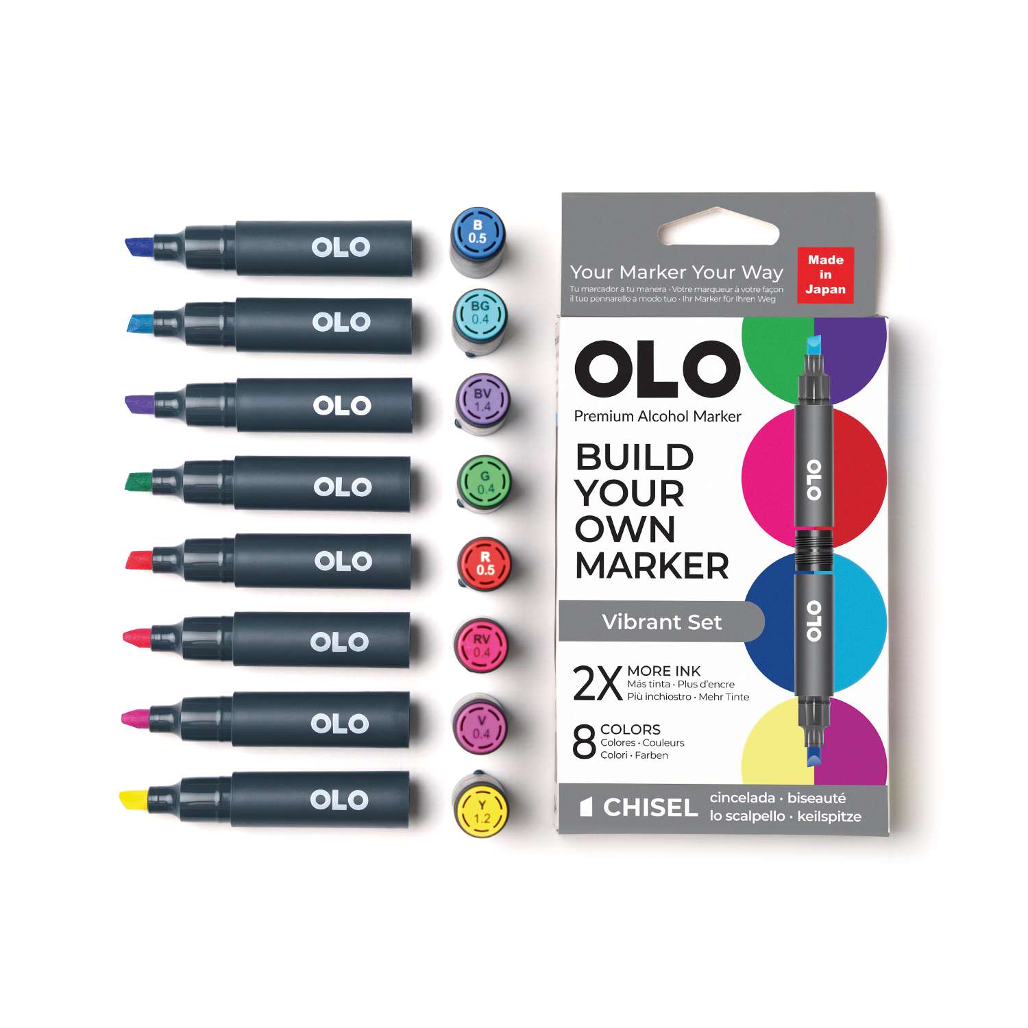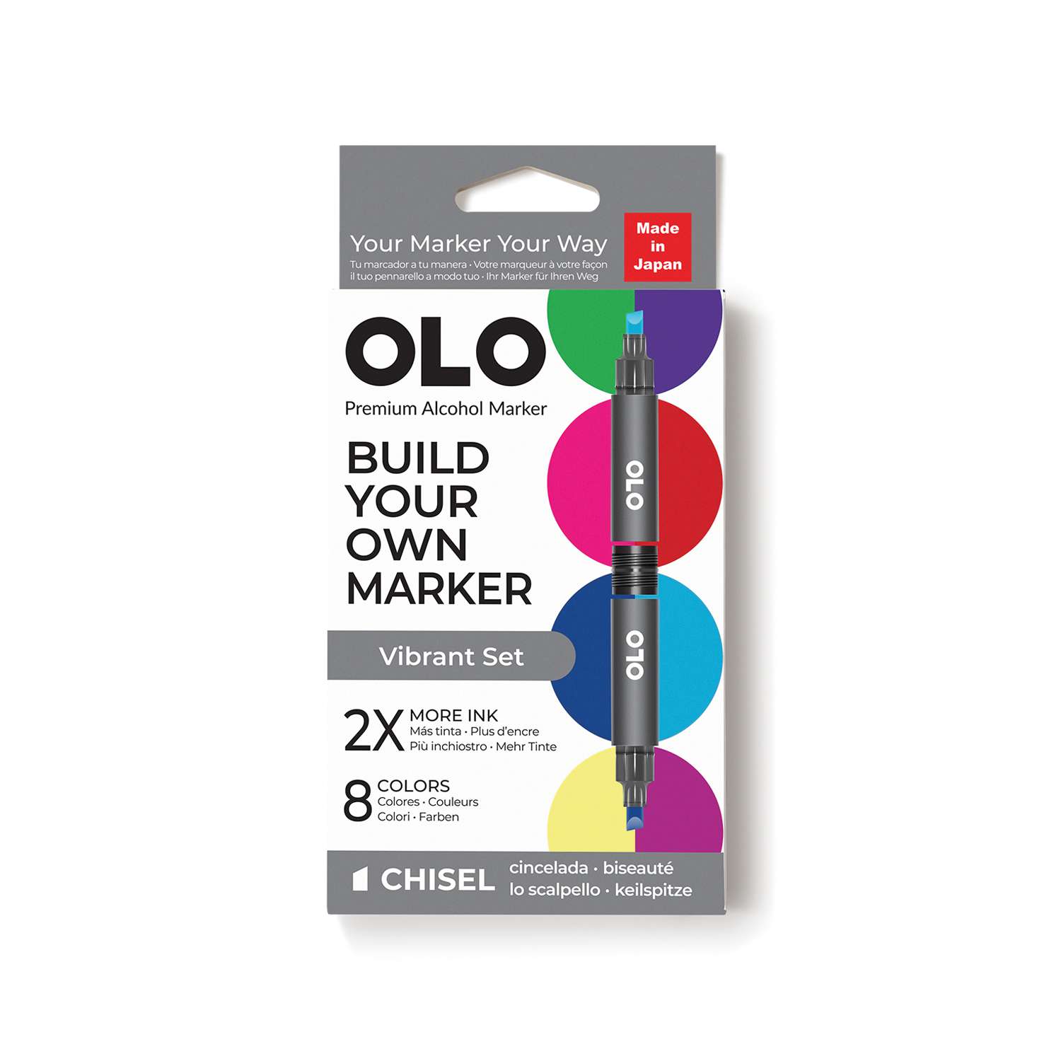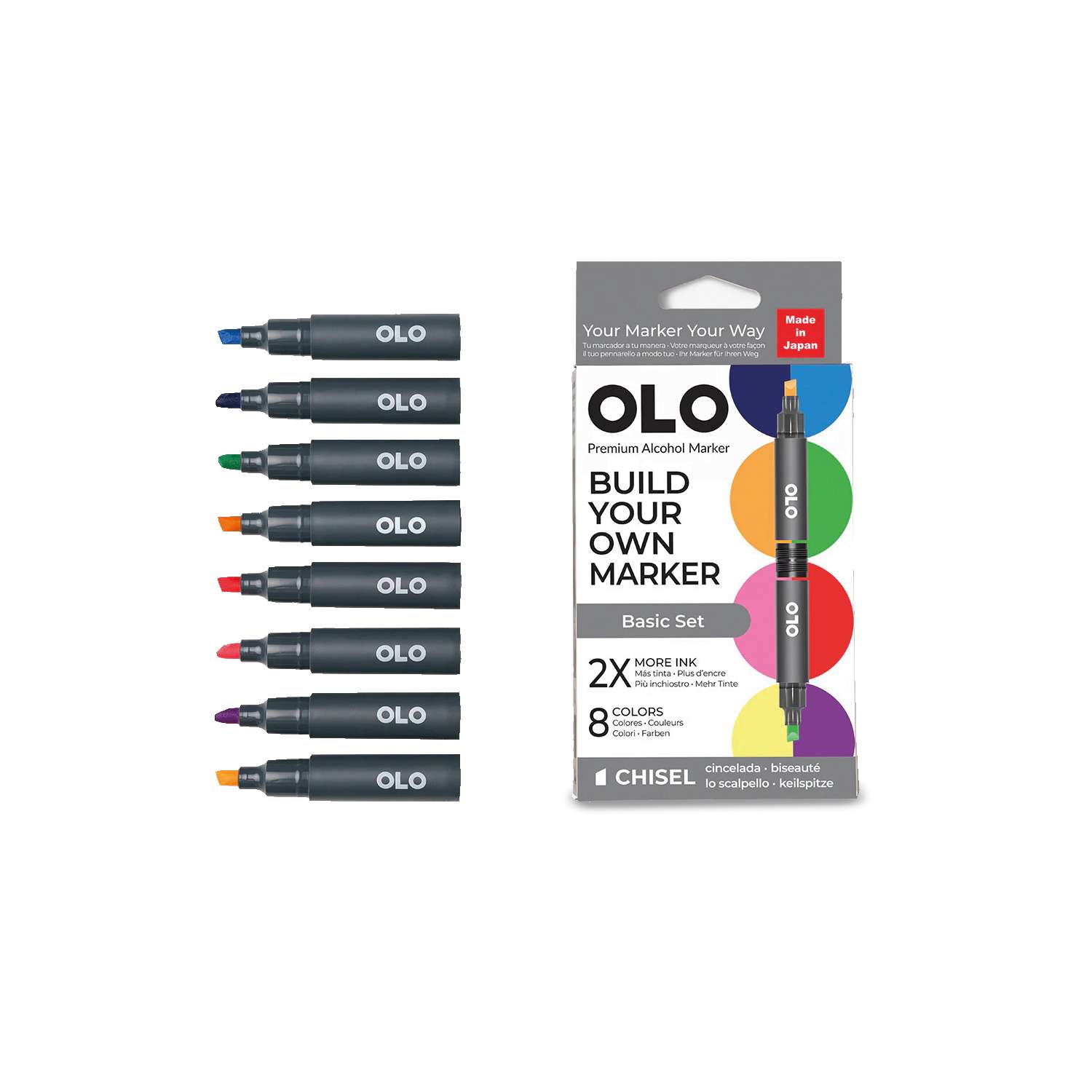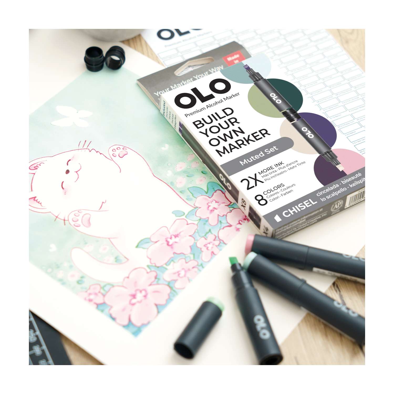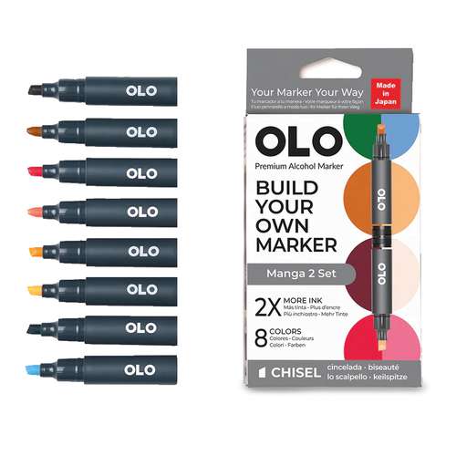 OLO™ Keilmarker ermöglichen es Ihnen, Farben und Spitzen in einem Marker ganz nach Ihren Bedürfnissen zu kombinieren. Erstellen und mischen Sie Ihre Marker, um Ihren perfekten Stift zu gestalten!