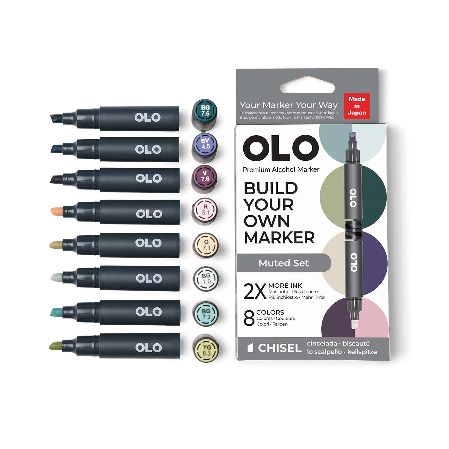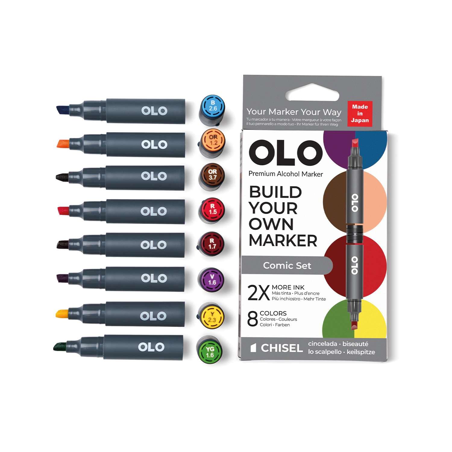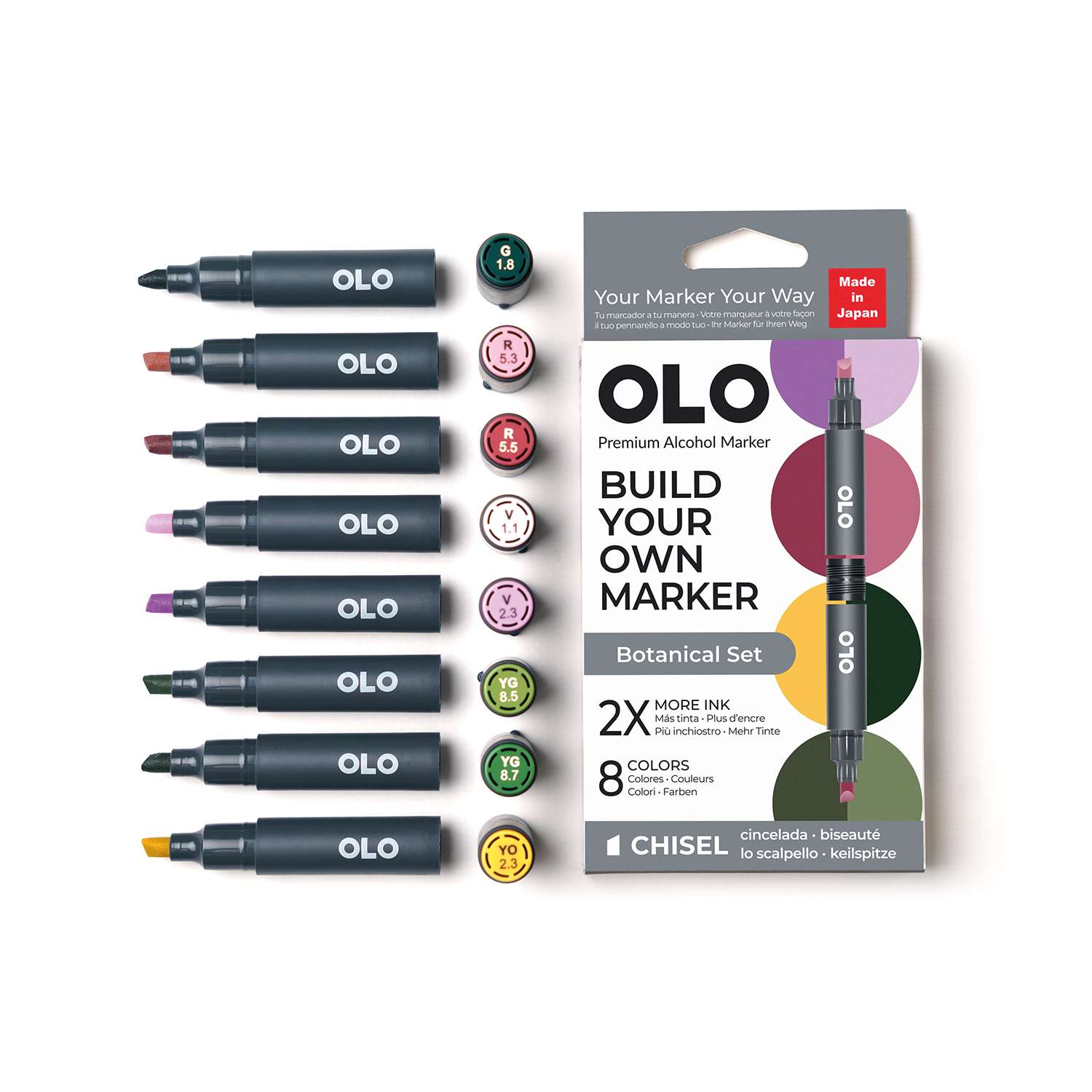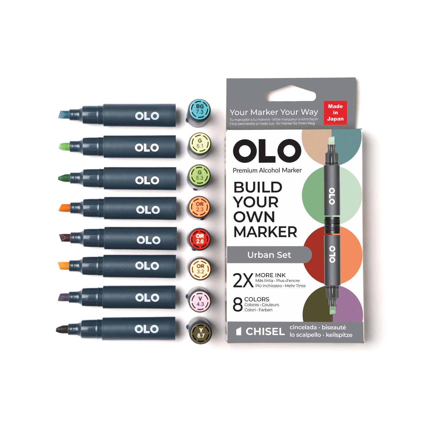 OLO™ Keilmarker ermöglichen es Ihnen, Farben und Spitzen in einem Marker ganz nach Ihren Bedürfnissen zu kombinieren. Erstellen und mischen Sie Ihre Marker, um Ihren perfekten Stift zu gestalten!