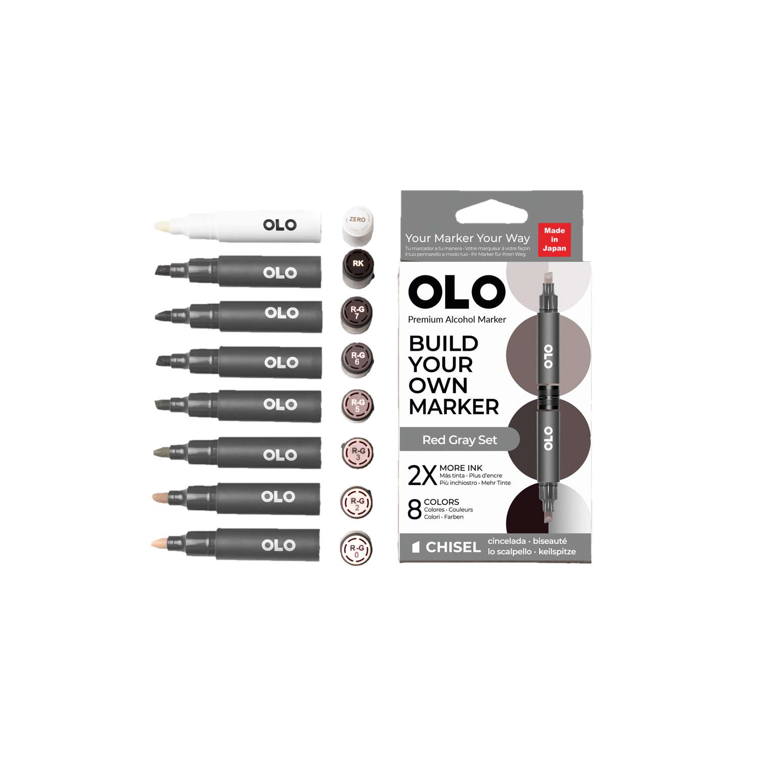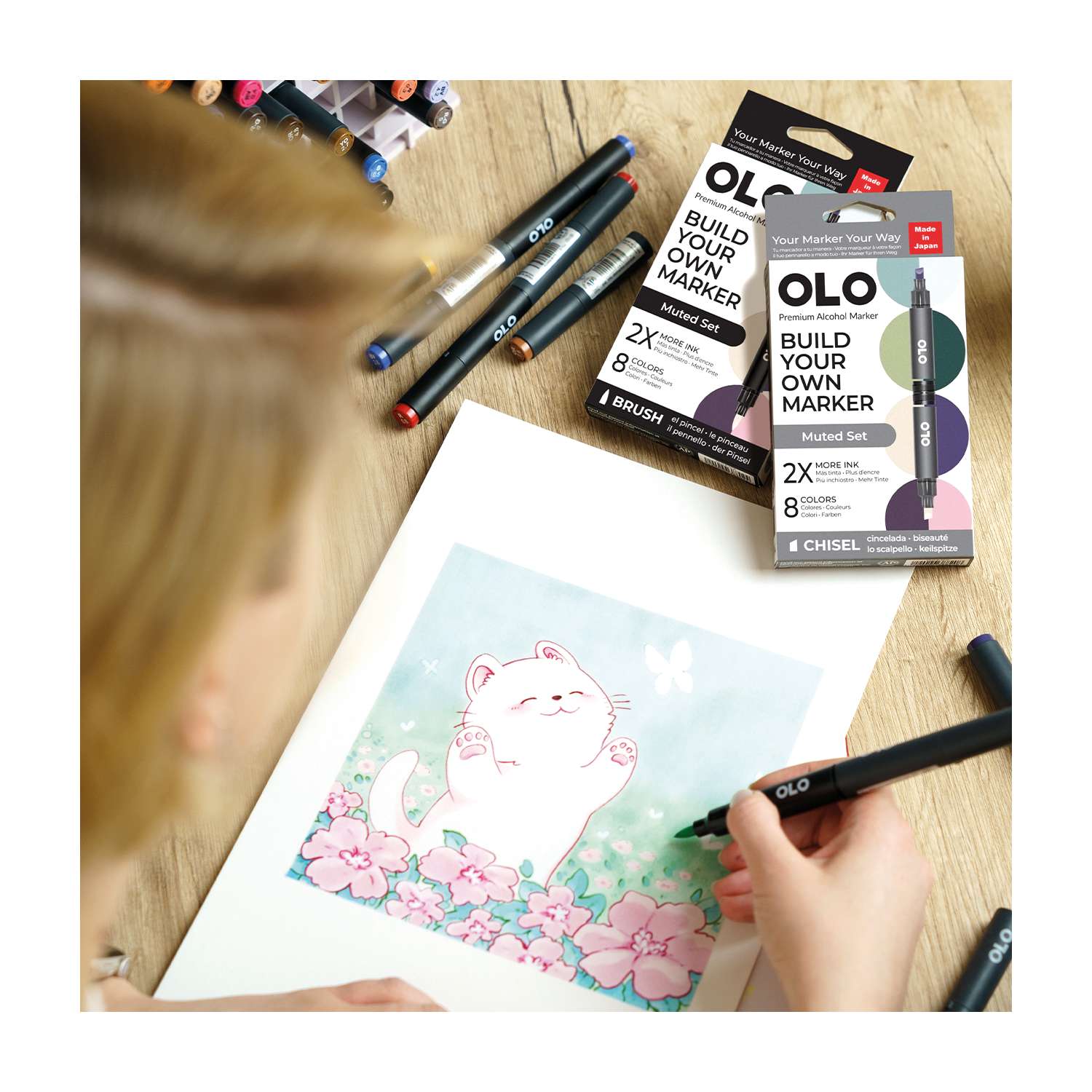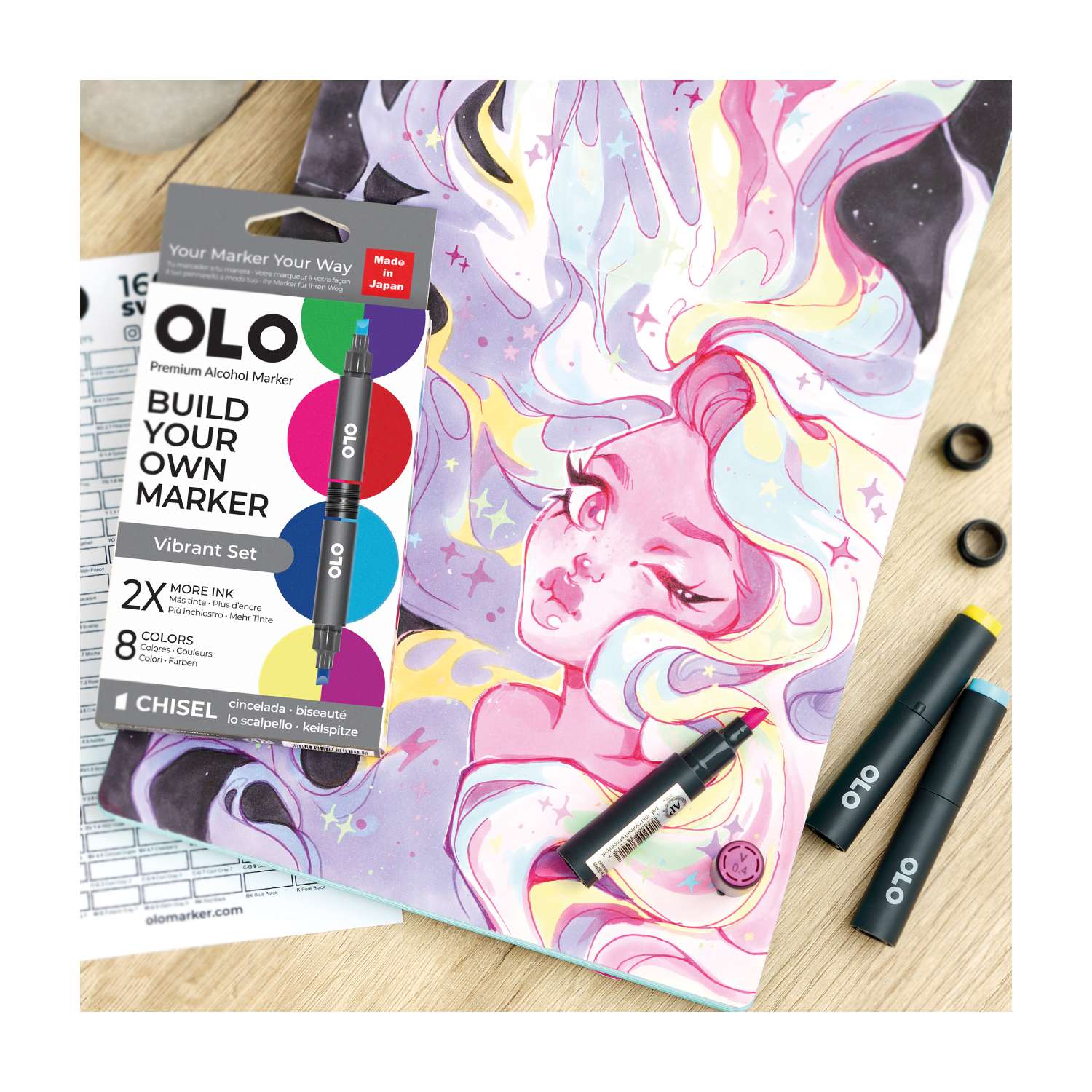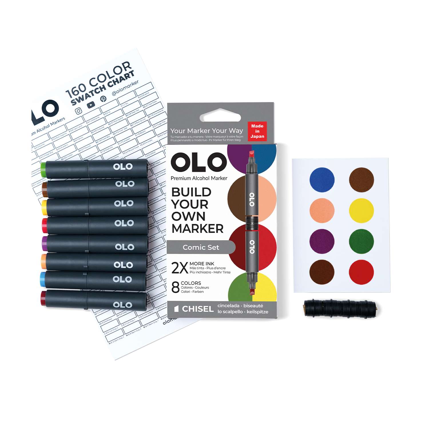 OLO™ Keilmarker ermöglichen es Ihnen, Farben und Spitzen in einem Marker ganz nach Ihren Bedürfnissen zu kombinieren. Erstellen und mischen Sie Ihre Marker, um Ihren perfekten Stift zu gestalten!