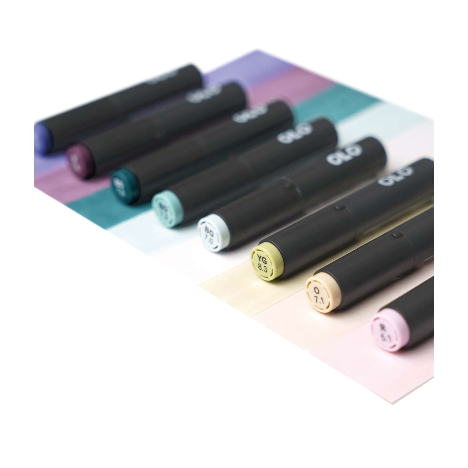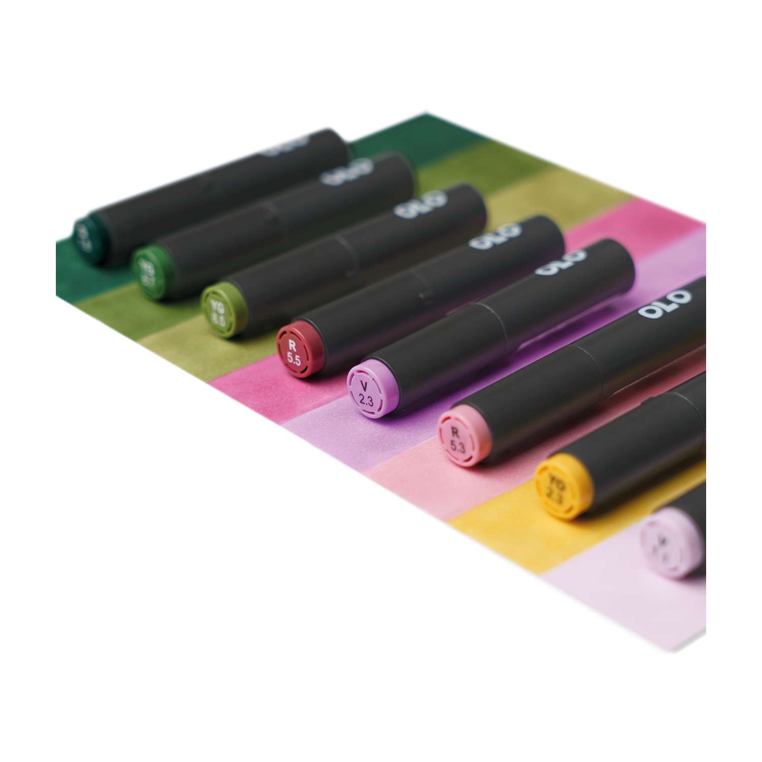Das OLO™ Farbsystem ist sorgfältig strukturiert, um Ihren kreativen Prozess zu vereinfachen. Jede Farbe wird durch einen Buchstaben klassifiziert, der die Farbfamilie angibt, einen Ton, der die Variationen innerhalb einer Familie repräsentiert, und einen Wert, der die Intensität der Farbe von hell nach dunkel anzeigt. Dieses System hilft Ihnen, den perfekten Farbton auszuwählen und Farbabstufungen für fließende Übergänge und harmonische Mischungen zu organisieren.
