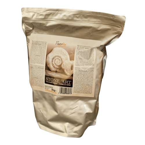 POWERTEX® Stone Art ist ein pulverförmiger Zellulosestoff. In Verbindung mit Powertex® Textilverstärker lässt sich eine tonharte, leichte und lufttrocknende Modelliermasse herstellen. Dazu Stone Art einfach mit dem flüssigen Dekorationsverstärker mischen und Sie erhalten eine selbsthärtende Masse, die mit Pigmenten und/oder Acrylfarbe weiter bearbeitet werden kann. Folgende Eigenschaften zeichnen es aus: