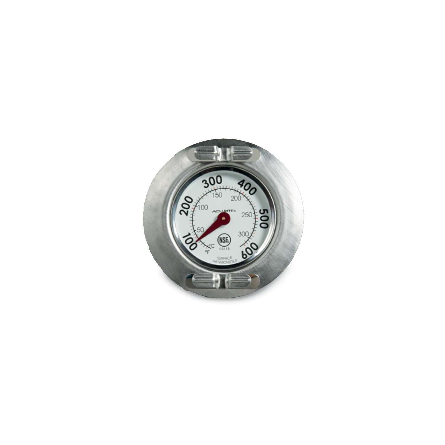 Das Thermometer misst Temperaturen im Bereich von 50° bis 600° Fahrenheit. Es besteht aus langlebigem Edelstahl und ist mit einem schützenden Glasdeckel ausgestattet. Dank der bi-metallischen Spule liefert es präzise Messwerte. Integrierte Laschen ermöglichen zudem ein leichtes Abnehmen von heißen Oberflächen.