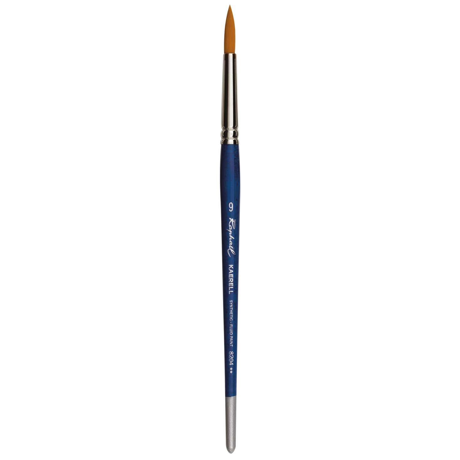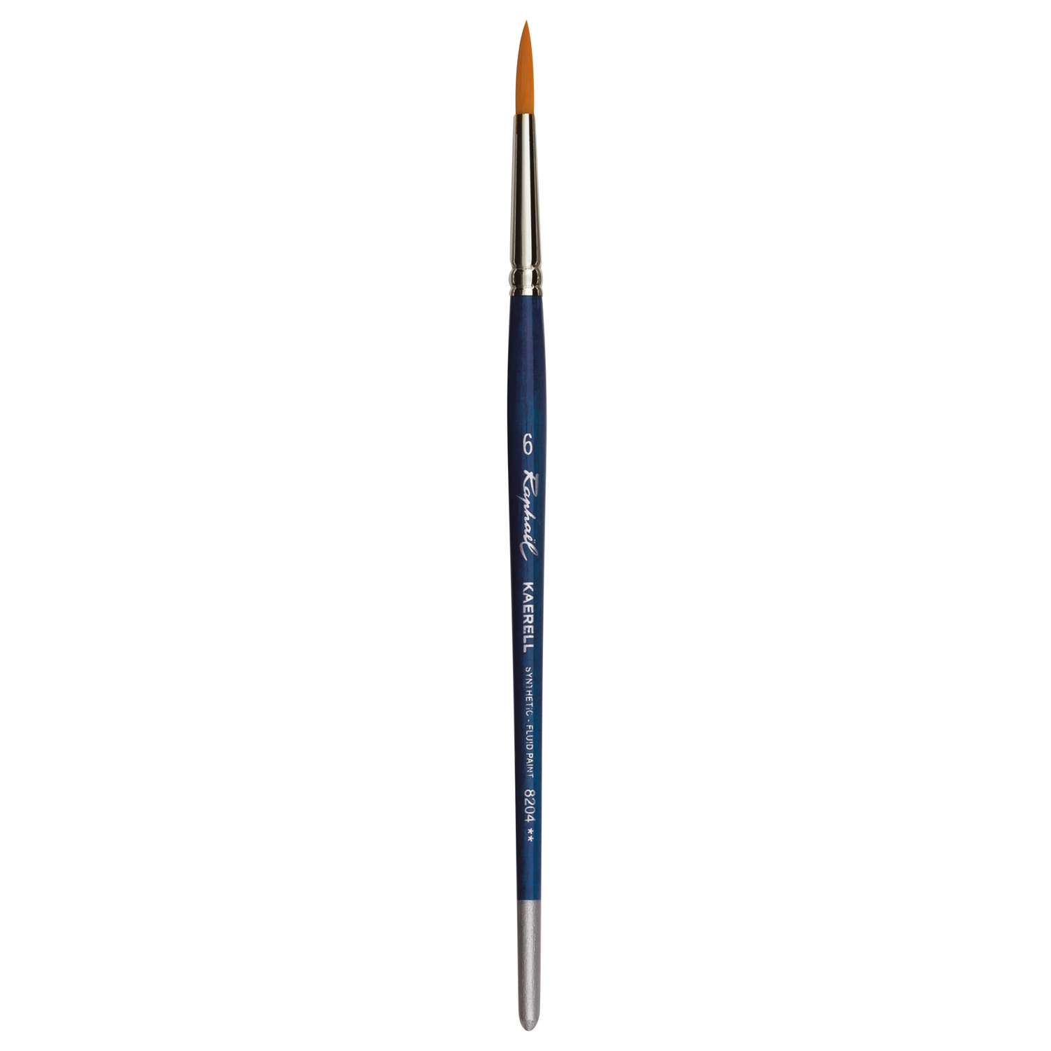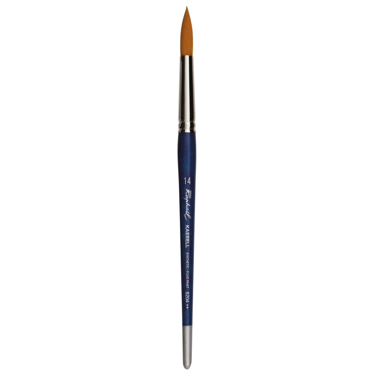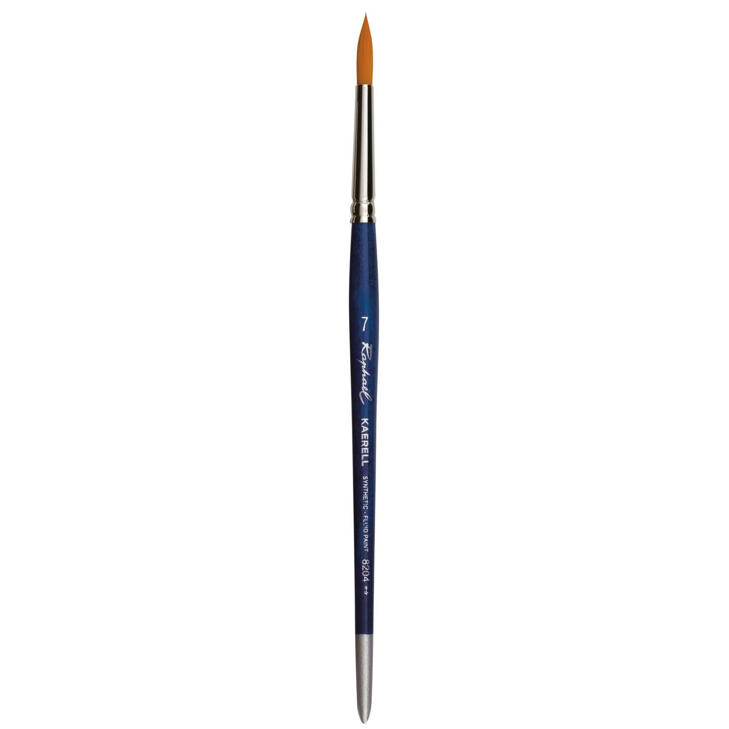 RAPHAËL® Kaerell Bleu Serie 8204 Pinsel. Der Rundpinsel ist für alle Maltechniken auf beliebigen Malgründen geeignet. Seine feinen, golden, synthetischen Kaerell Fasern ermöglichen ein genaues und detailliertes Arbeiten. Der Kaerell Pinsel eignet sich auch für arbeiten mit Glasuren oder Aquarellfarben. Kurzer blau lackierter Stiel und Messingzwinge. – Preis pro Pinsel