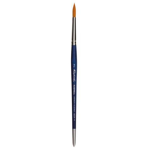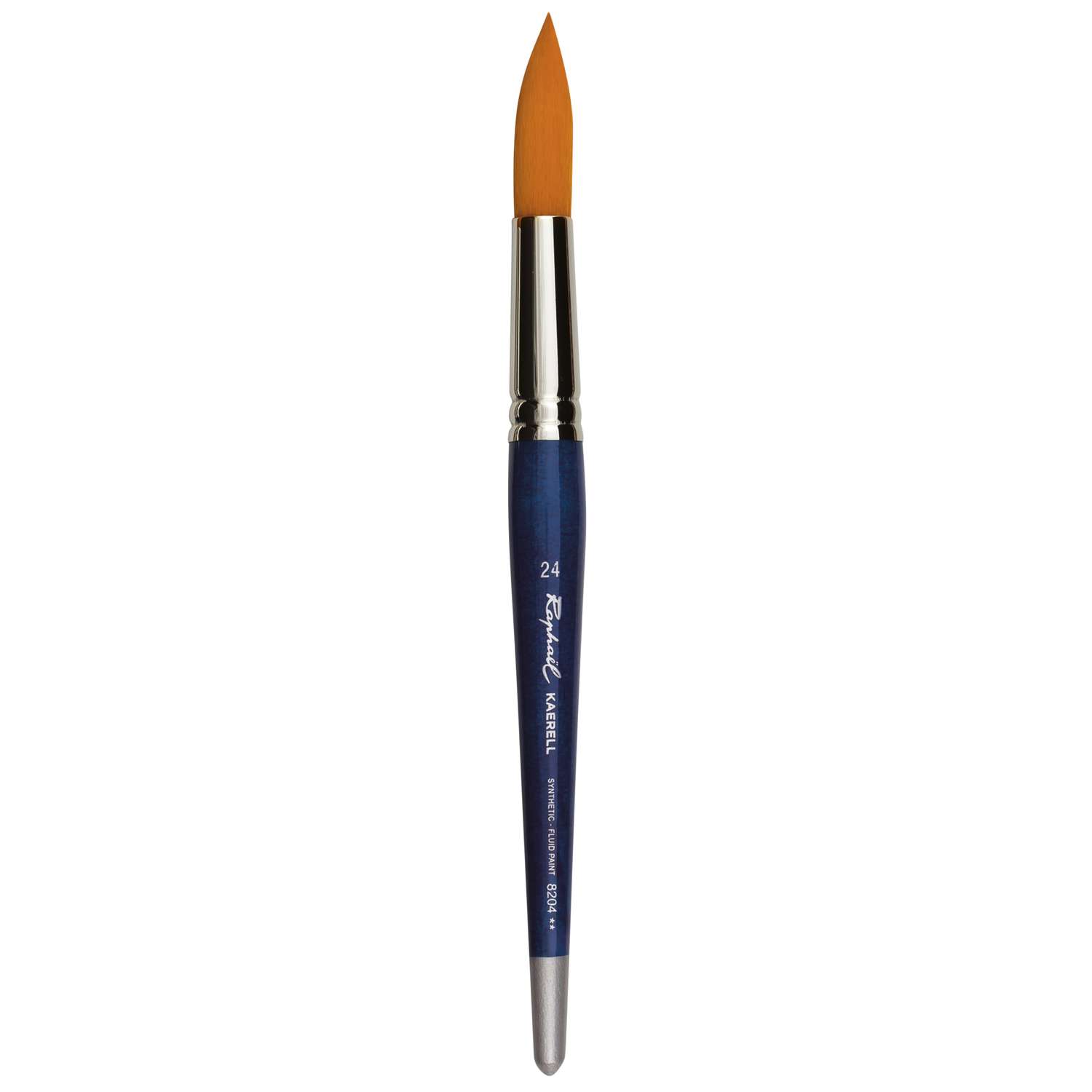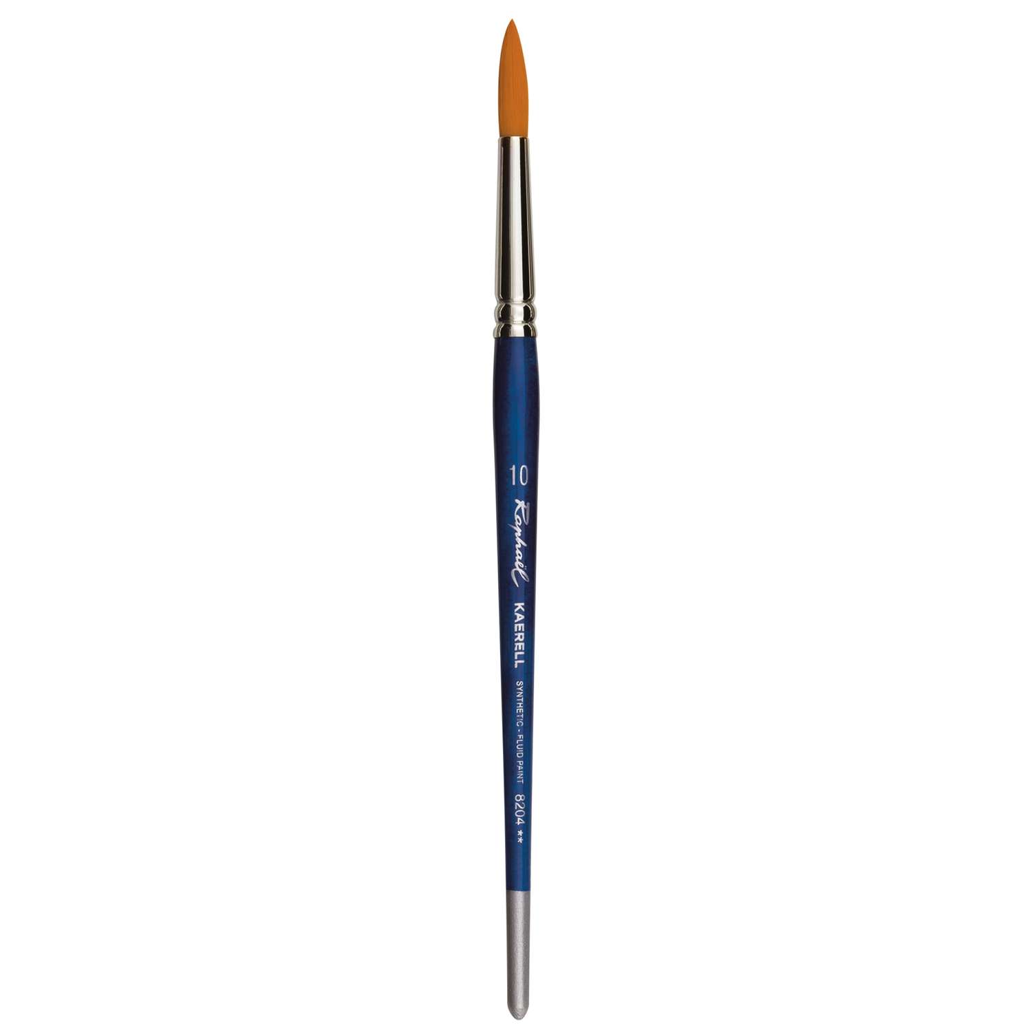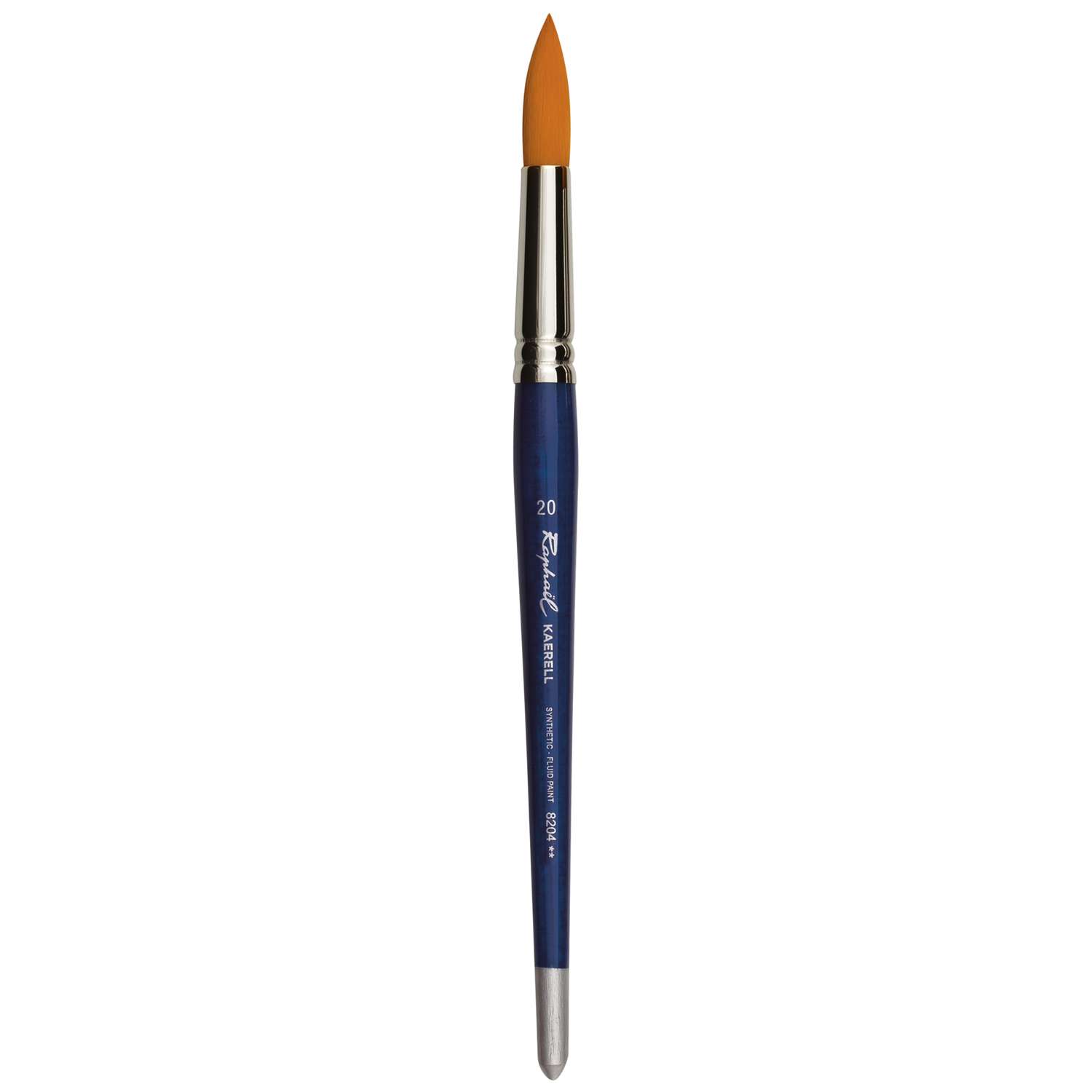 RAPHAËL® Kaerell Bleu Serie 8204 Pinsel. Der Rundpinsel ist für alle Maltechniken auf beliebigen Malgründen geeignet. Seine feinen, golden, synthetischen Kaerell Fasern ermöglichen ein genaues und detailliertes Arbeiten. Der Kaerell Pinsel eignet sich auch für arbeiten mit Glasuren oder Aquarellfarben. Kurzer blau lackierter Stiel und Messingzwinge. – Preis pro Pinsel