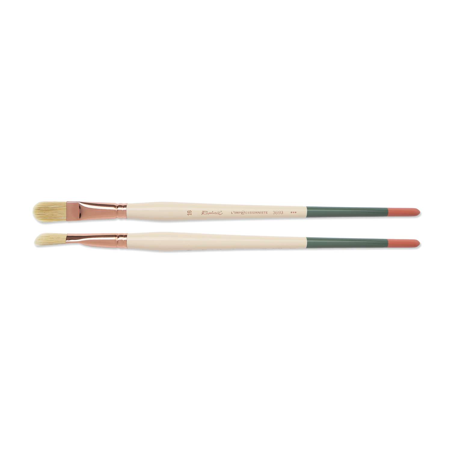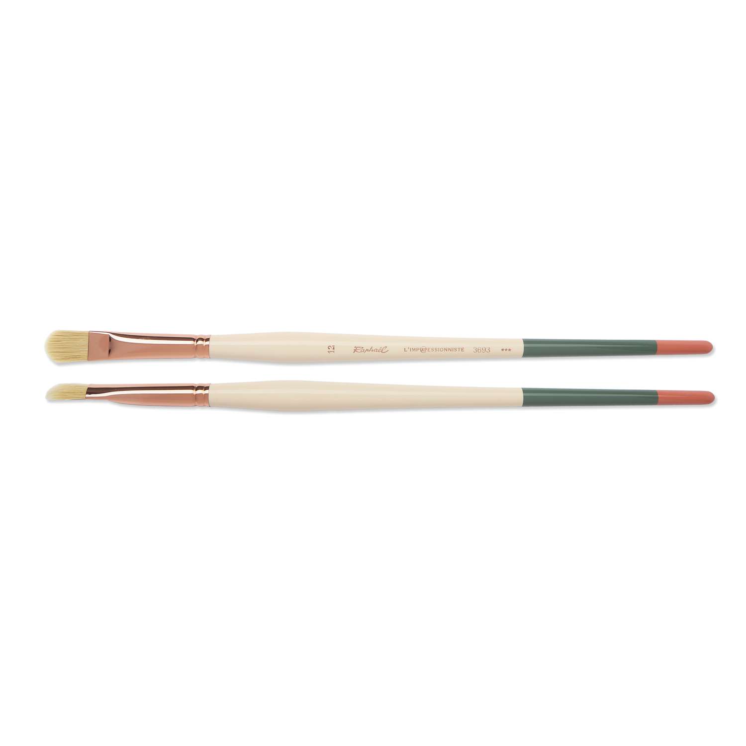 Der Raphaël® L'IMPRESSIONNISTE 3693 ist ein D-Pinsel mit synthetischem Haar – die vegane Alternative zu klassischem Borstenhaar. Seine speziell gekrümmten Fasern bieten genau die Elastizität und Formstabilität, die Künstler von einem hochwertigen Pinsel erwarten: mit optimalem "Snap" und "Spring" sowie mehrfach gesplitteten Spitzen zur maximalen Farbaufnahme.