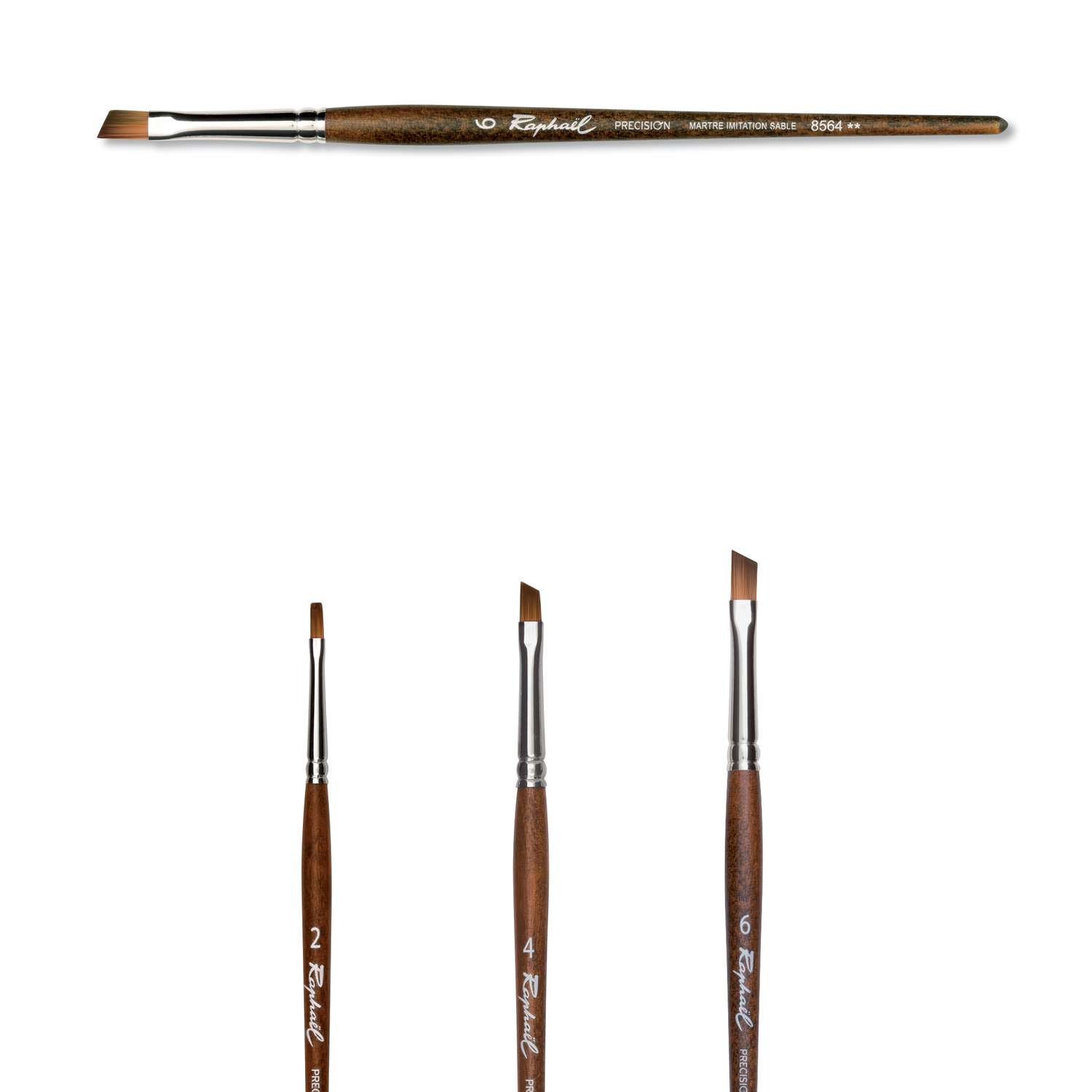 Die Raphaël® Precision Aquarellpinsel Serie 8564, Schrägpinsel ist für alle die entwickelt, die einen ultrapräzisen Pinsel suchen. Gefertigt aus Marderhaarimitat, ist er der präziseste Aquarellpinsel seiner Klasse und zeichnet sich durch die qualitativ hohen Eigenschaften des Marderhaares aus, bei einem sehr guten Preis-Leistungs-Verhältnis. Der Precision Aquarell Schrägpinsel wird besonders durch seine Formbeständigkeit, die Feinheit seiner Spitze sowie für seine Spannkraft und seine Elastizität geschätzt. Besonders zum Malen von Blättern oder schmalen Ecken, entweder mit der schrägen Spitze oder indem der Schrägpinsel flach über den Untergrund gezogen wird.