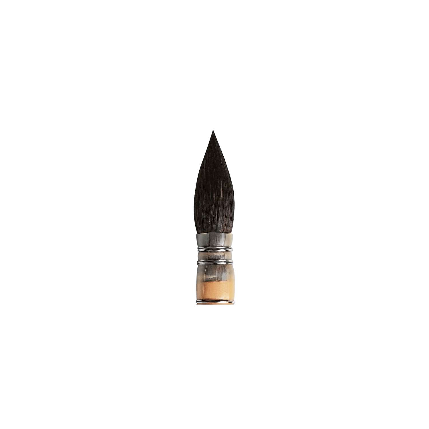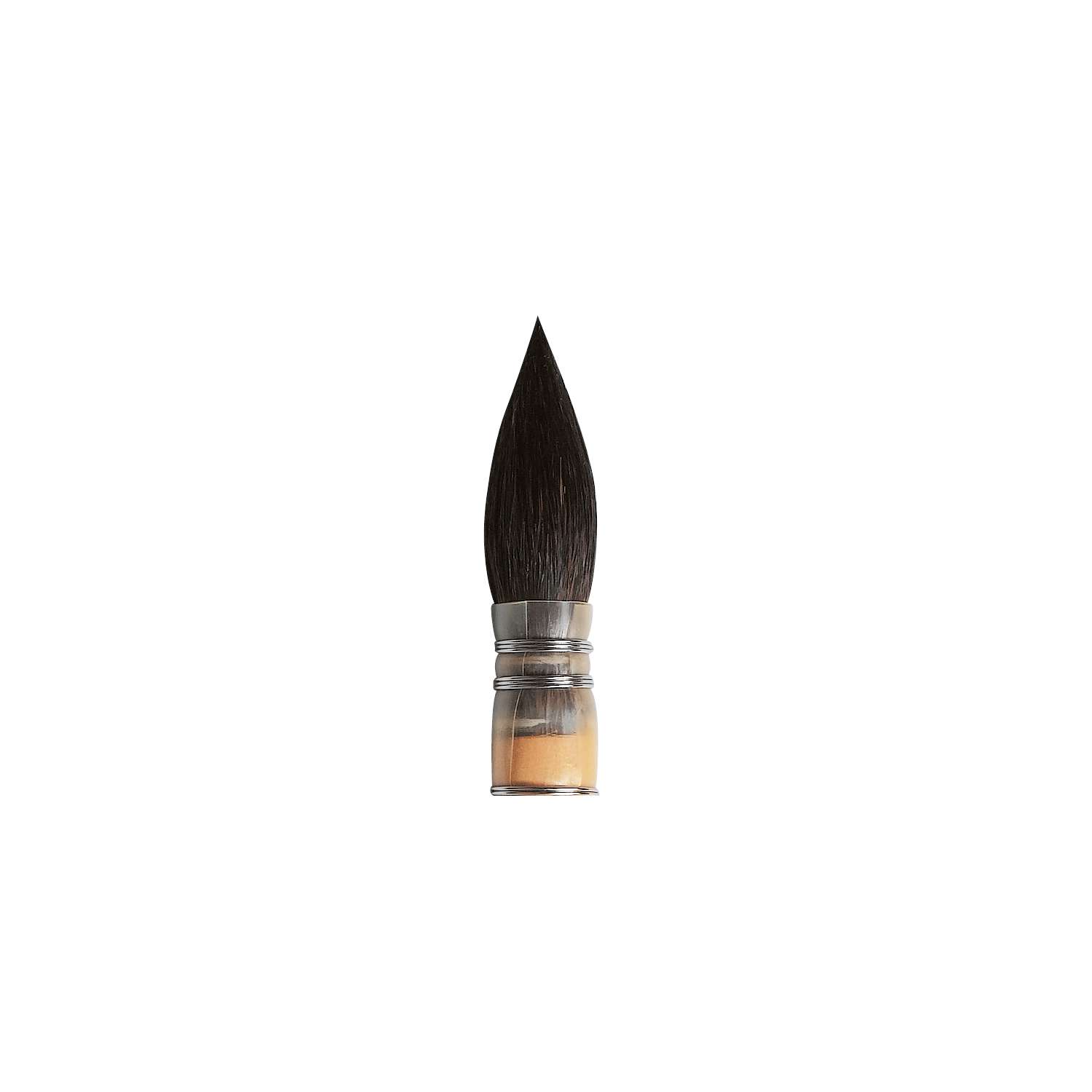 Aus Kasaner Fehhaaren. Handgebundener Kielpinsel mit vorzüglicher Spitze und großer Kapillare. Er ist von seltener Geschmeidigkeit. Kurzer, farblos lackierter Stiel. Geeignet für Aquarell, Batik, Keramik, Wasserfarben, Verwaschen, Porzellan und Seidenmalerei. - Preise pro Stück.