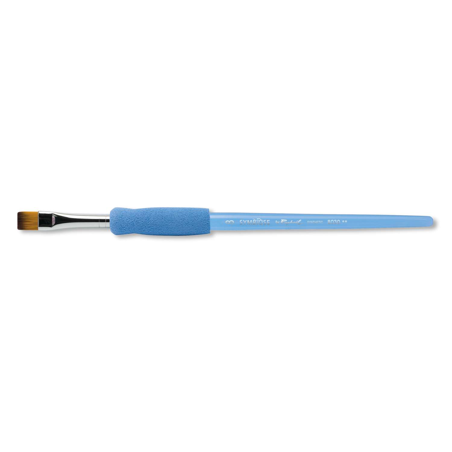 Der Raphaël Symbiose klassischer Flachpinsel Serie 8030 liegt besonders leicht in der Hand. Durch den blauen Kunststoffstiel und die ergonomisch geformte Griffzone aus Gummi fördert dieser Synthetikpinsel die richtige Pinselhaltung und sorgt somit für ein ermüdungsfreies Malen.