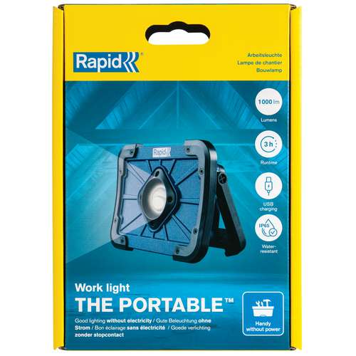 Die Rapid® The Portable tragbare Akku-LED-Arbeitsleuchte ist eine mobile Lichtlösung für Montage-, Werkstatt- und Servicearbeiten. Durch die kompakte Bauform und den integrierten Akku kann sie unabhängig von einer festen Stromquelle flexibel an wechselnden Einsatzorten verwendet werden.