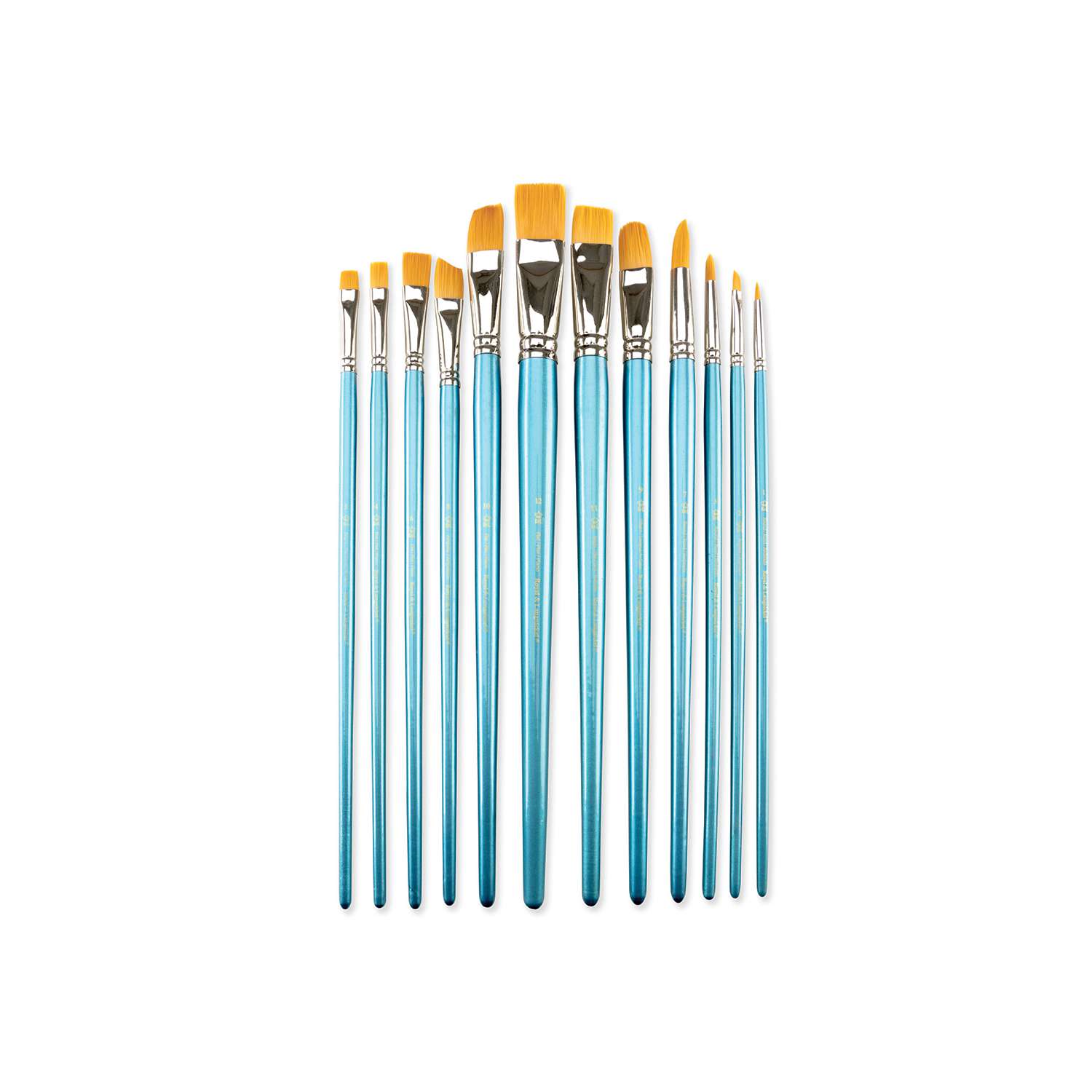 - 12 verschiedene Pinsel für vielseitige Anwendungen: Verwaschpinsel 5, 11; Flach 4, 6, 10, 12; Rund 1, 3, 7; Schräg 2, 8; Katzenzunge 9