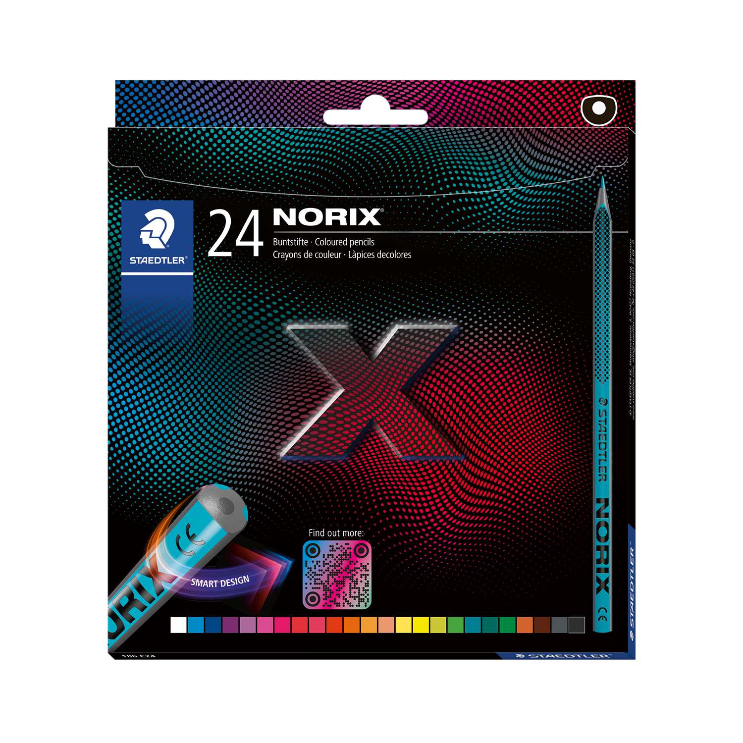 Die STAEDTLER® NORIX® Buntstifte verbinden hohe Qualität mit modernem Design. Ihre innovative, einzigartige Form sorgt für entspanntes und komfortables Malen und Zeichnen. Das coole schwarze X-treme Design macht die Stifte zu einem echten Blickfang, während die weiche, rutschfeste Oberfläche für ein angenehmes Handling sorgt.
