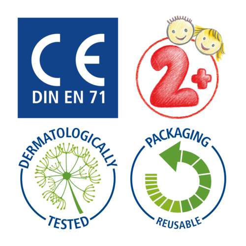 Die Knete klebt nicht, ist CE- und UKCA-geprüft sowie dermatologisch getestet – für unbeschwertes Spielen mit höchster Sicherheit. Ein kreatives Material, das Kinder fantasievoll begleitet und Eltern beruhigt.