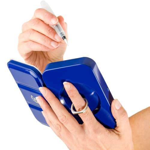- Robuste Metallbox mit ergonomischem Fingerring für sicheren Halt