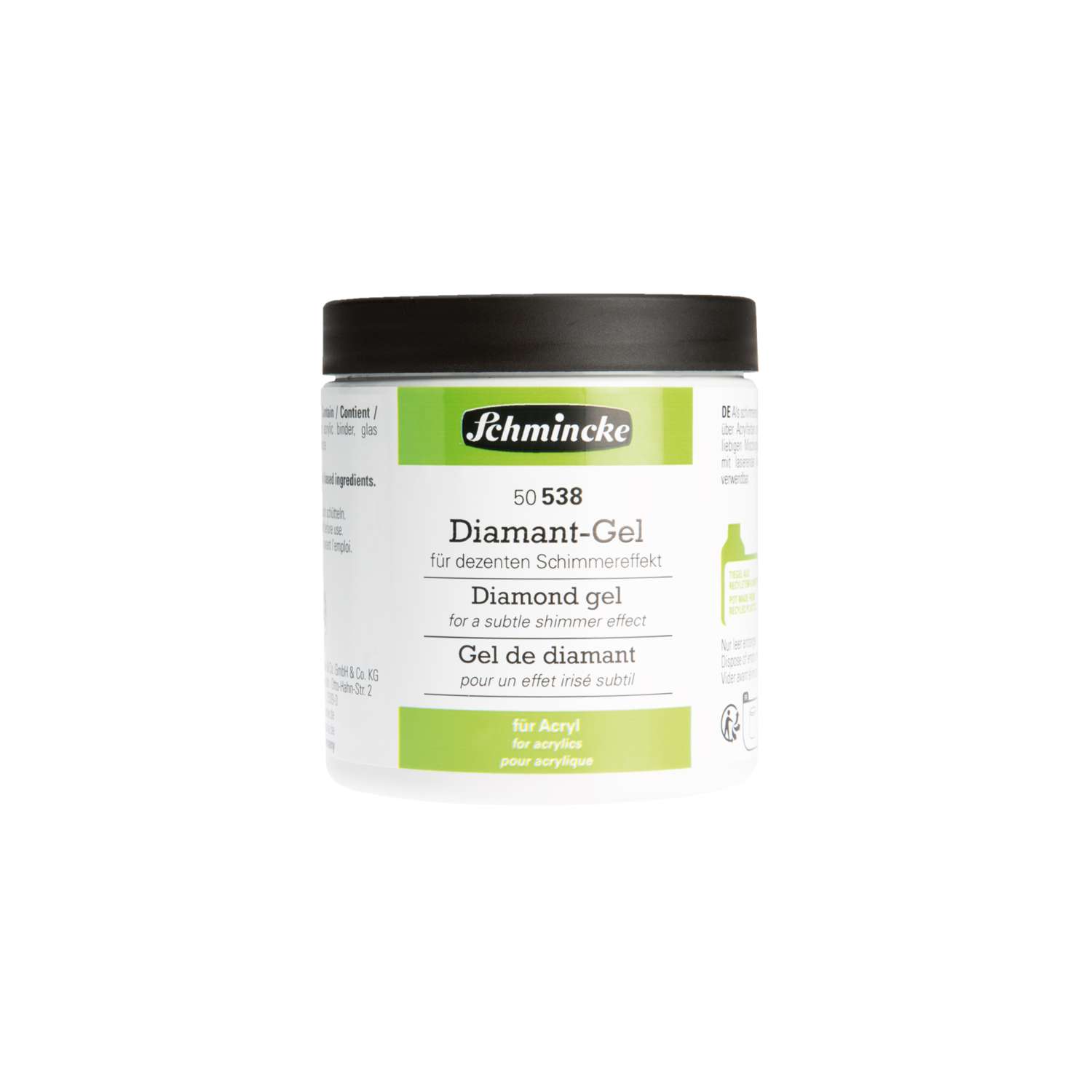 Das Schmincke Diamant-Gel ist ein faszinierendes Acryl-Hilfsmittel, das transparente Farbaufträge mit einem subtilen, lichtreflektierenden Schimmer veredelt. Es lässt sich sowohl pur als auch in Kombination mit lasierenden Acrylfarben einsetzen. Dadurch entstehen einzigartige Glanzeffekte, die je nach Lichteinfall unterschiedlich changieren.