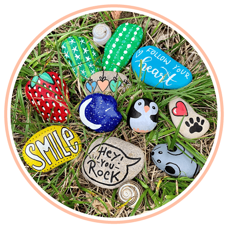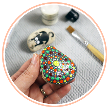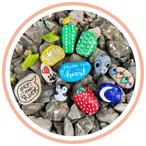 Die fertig bemalten Steine eignen sich als hübsche, auffällige Deko im eigenen Garten, im Pflanzentopf, als Sammelstück, Glücksbringer, als Begleiter im Büro, schöner Briefbeschwerer oder ganz klassisch und beliebt beim Spaziergang im Wald oder an einer Busstation ausgesetzt, um den folgenden Passanten ein Lächeln zu entlocken.