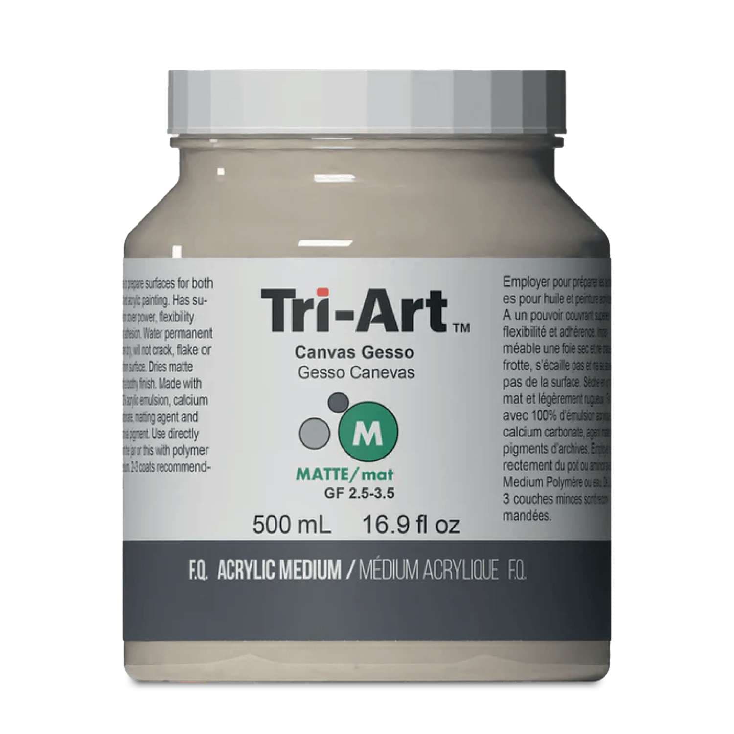 Die Spezialrezeptur auf 100 % Acrylpolymer-Basis enthält feines Kalksteinmehl und Pigmente in hoher Konzentration. So entsteht eine ausgezeichnet deckende und saugfähige Oberfläche mit gleichmäßigem Farbauftrag. Dank der geschmeidigen Textur lässt sich das Gesso in sehr dünnen, gleichmäßigen Schichten auftragen, die sich flexibel an unterschiedliche Oberflächen anpassen – ganz ohne Rissbildung. Besonders empfohlen wird der Auftrag von mindestens drei dünnen Schichten für beste Ergebnisse bei der Ölmalerei.