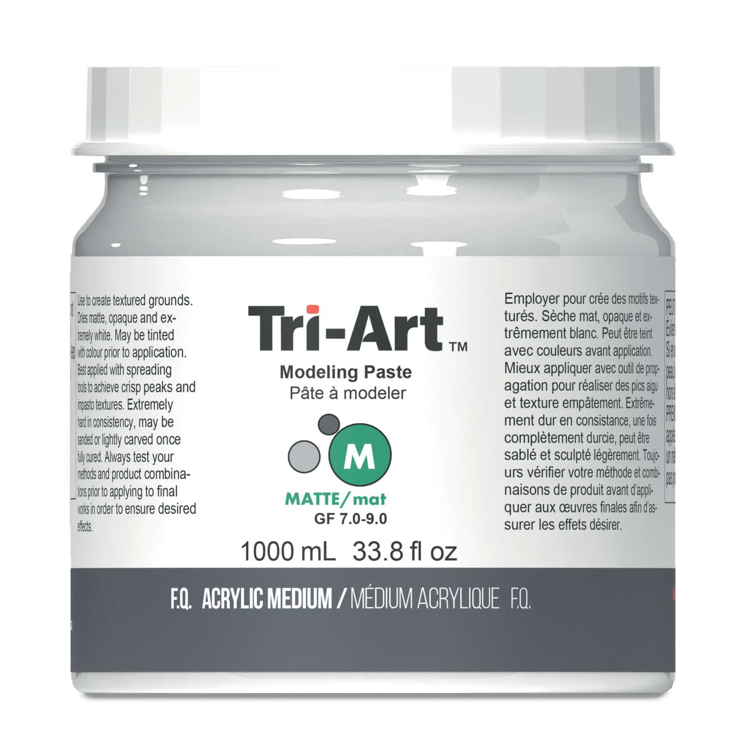 Die Tri-Art™ Modeling Paste ist ein hochviskoses Acrylmedium für den Aufbau von plastischen Strukturen, Reliefs und pastosen Malgründen. Die Modellierpaste ist weiß, cremig und trocknet zu einer matten, deckenden Oberfläche auf.
