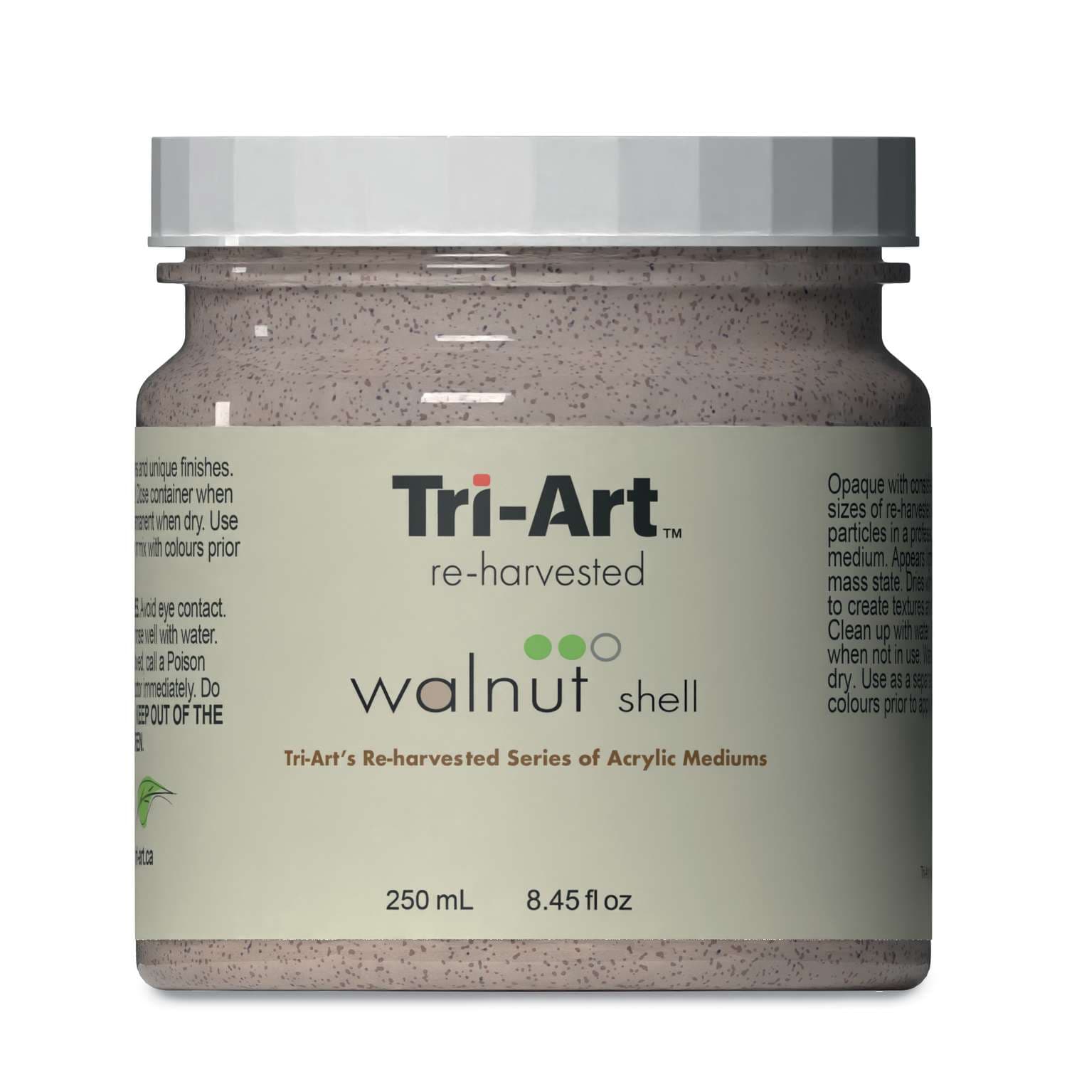 Das Tri-Art™ Re-Harvested Walnut Shell ist ein nachhaltiges Acryl-Strukturmedium, das aus recycelten Walnussschalen hergestellt wird. Es verleiht Oberflächen eine charakteristische, körnige Textur und erzeugt natürliche, organische Effekte.
