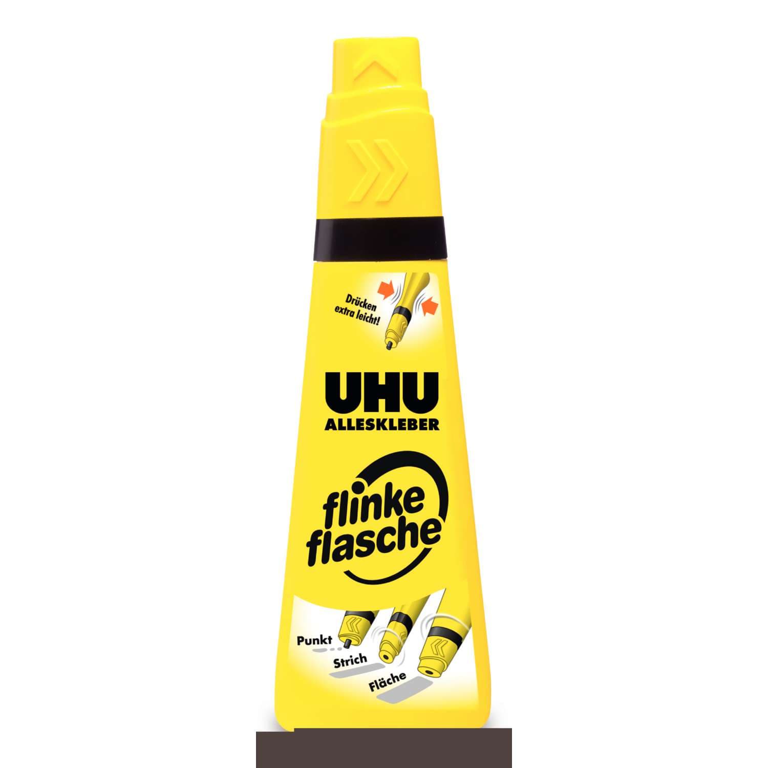 UHU® flinke flasche, der auswaschbare Alleskleber mit dem einzigartigen Drehklebekopf für Punkt-, Strich- und Flächenkleben. Klebt Papier, Pappe, Holz, Filz, Stoff, Leder, Styropor u. v. a.