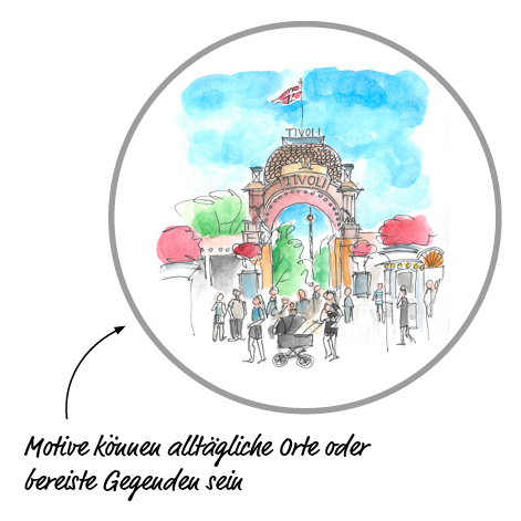 Eigene Bilder schaffen eigene Erinnerungen. - Anders als bei der Fotografie, bleiben die Dinge, die Urban Sketchers beim Malen beobachten und fühlen, im Gedächtnis verankert. Der flüchtige Moment, in dem ein Tourist vor einer Kirche den Auslöser der Kamera drückt, ist schnell vorbei. Wer sich hinsetzt und ein paar Elemente skizziert oder gar mehrere Stunden in ein Motiv abtaucht, der hat ganz andere Erinnerungen an diesen Ort.