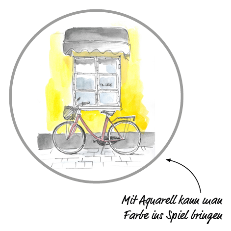 Wer sich der Aquarellmalerei verschrieben hat, der kann auch beim Urban Sketching aquarellieren. Als erweitertes Equipment empfehlen wir:
