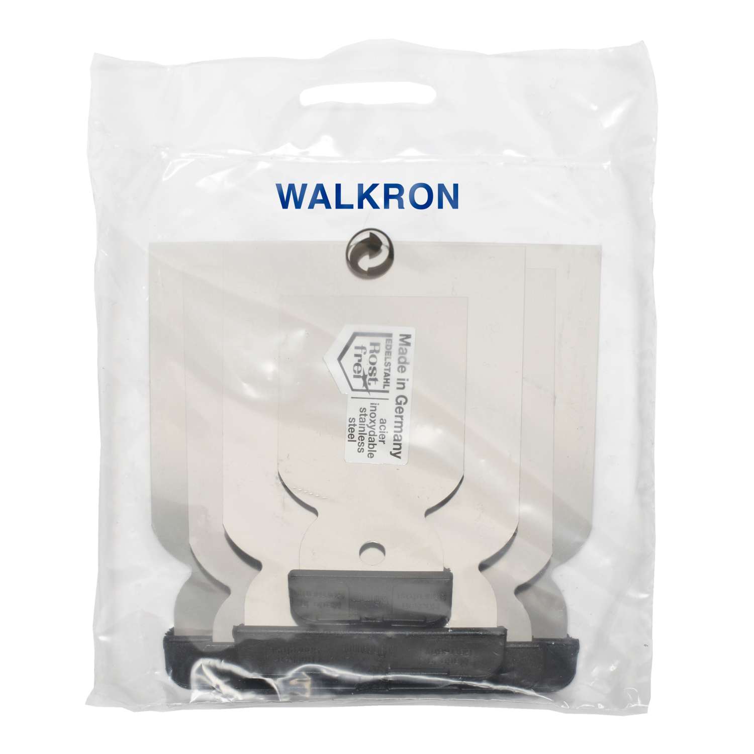 Das WALKRON Japanspachtel-Set Varia Nr. 36 bietet vier flexible und scharfe Spachteln in den gängigsten Breiten. Hergestellt aus hochwertigem, säurebeständigem INOX-Edelstahl (Härte II) mit einer Materialstärke von 0,31 mm, sind diese Spachteln besonders widerstandsfähig und langlebig. Die schwarzen Kunststoffgriffe liegen angenehm in der Hand und ermöglichen eine präzise Anwendung. Ideal zum Glätten und Füllen, lassen sich die Spachteln auch hervorragend zum Auftragen von Klebstoff verwenden.
