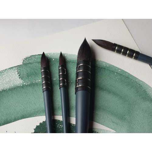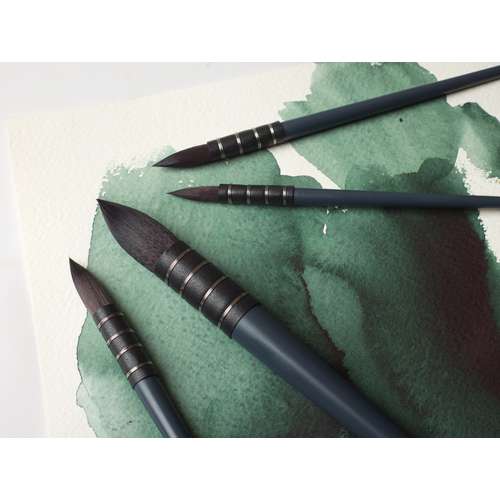 Die WINSOR & NEWTON™ Professional Watercolour französischen Aquarellpinsel mit runder Spitze sind in traditioneller französischer Technik gebunden. Ihre synthetischen Fasern imitieren perfekt die Eigenschaften von echtem Fehhaar – mit exzellenter Farbaufnahme und weichem Auftrag.