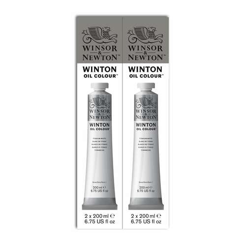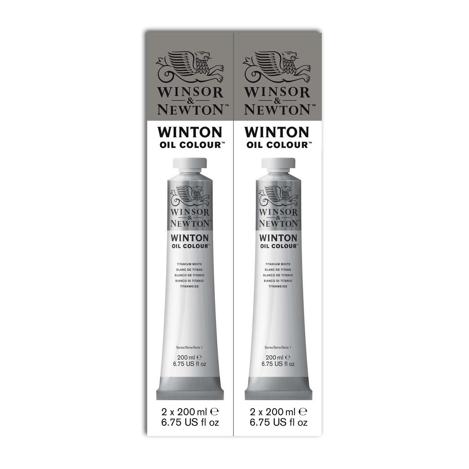 Zwei Tuben WINSOR & NEWTON Ölfarbe Titanweiß in 200 ml in einem preisgünstigen Doppelpack.