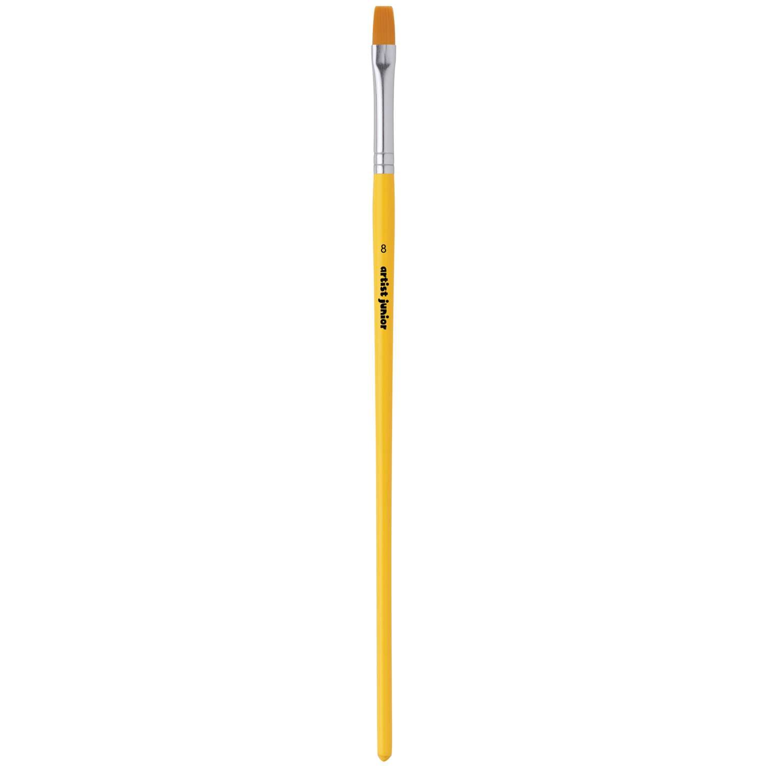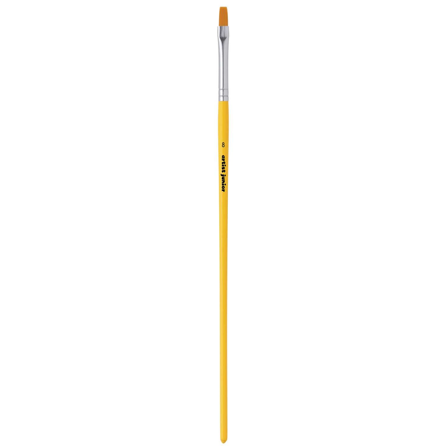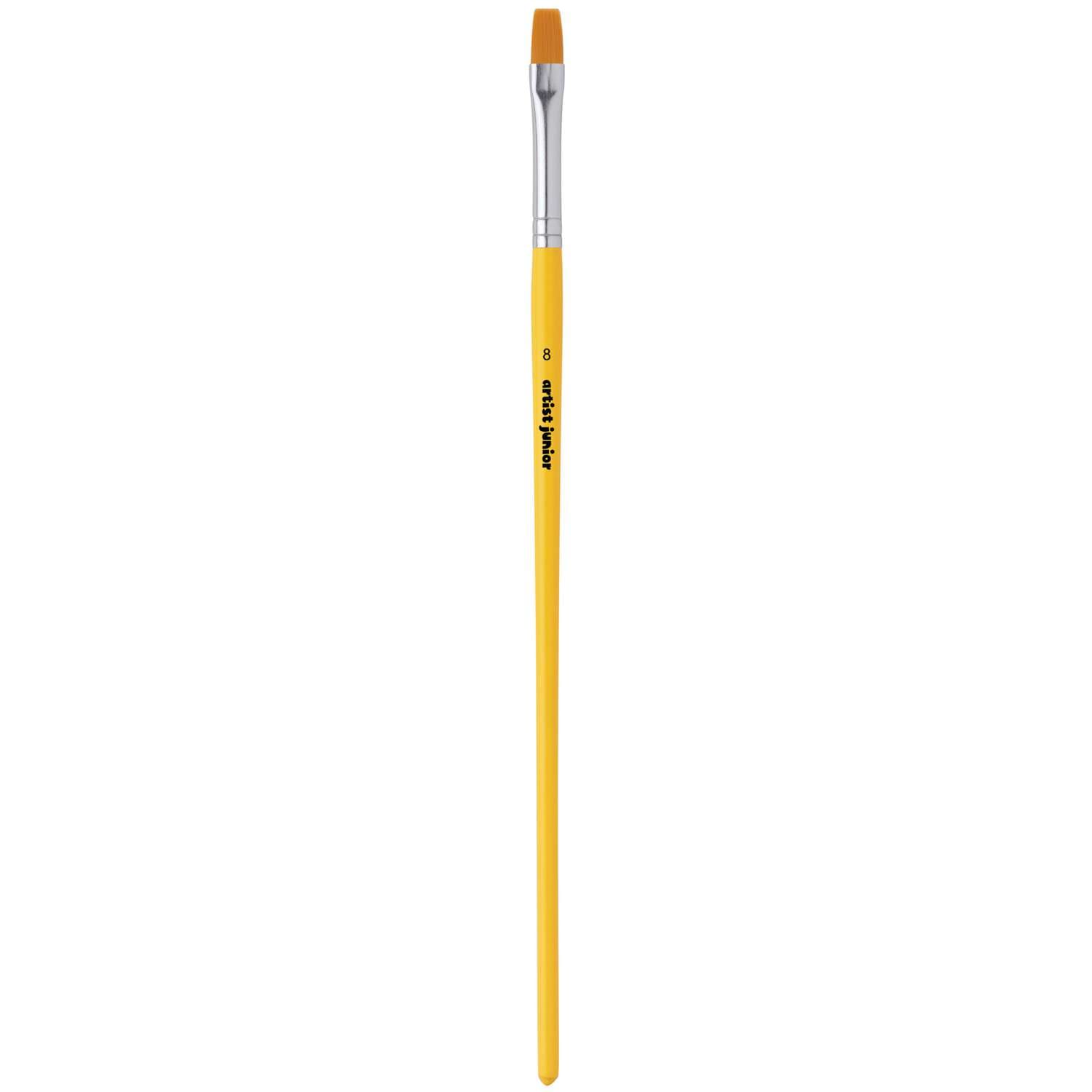 Der Artist Junior Synthetikpinsel ist für pastose Öl,- und Acrylmalerei geeignet. Die Synthetikborsten sind sauber verarbeitet, weich und elastisch. Sie werden von einer Weißblechzwinge an den gelben Holzstiel befestigt. Der Pinsel ist in 12 verschiedenen Größen lieferbar