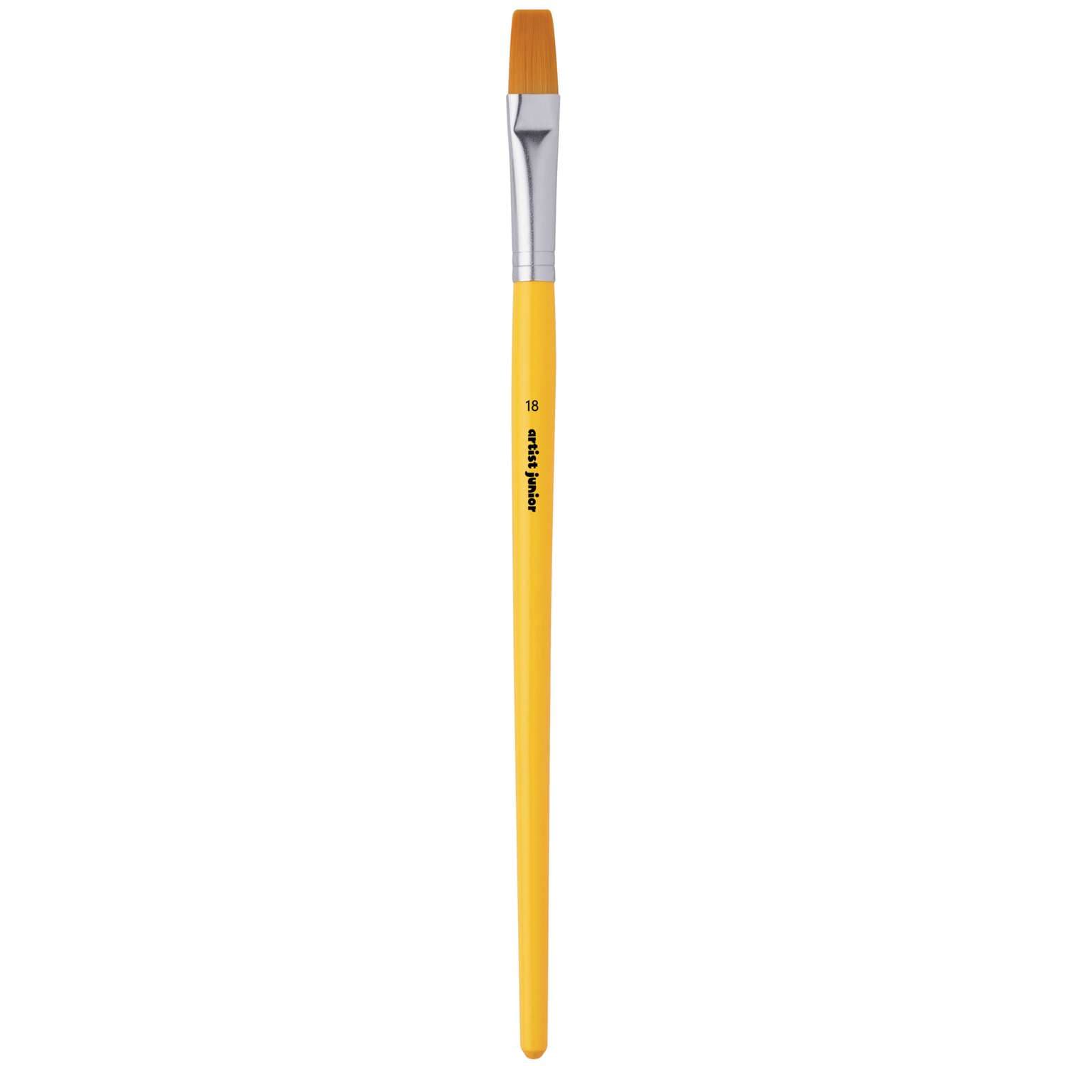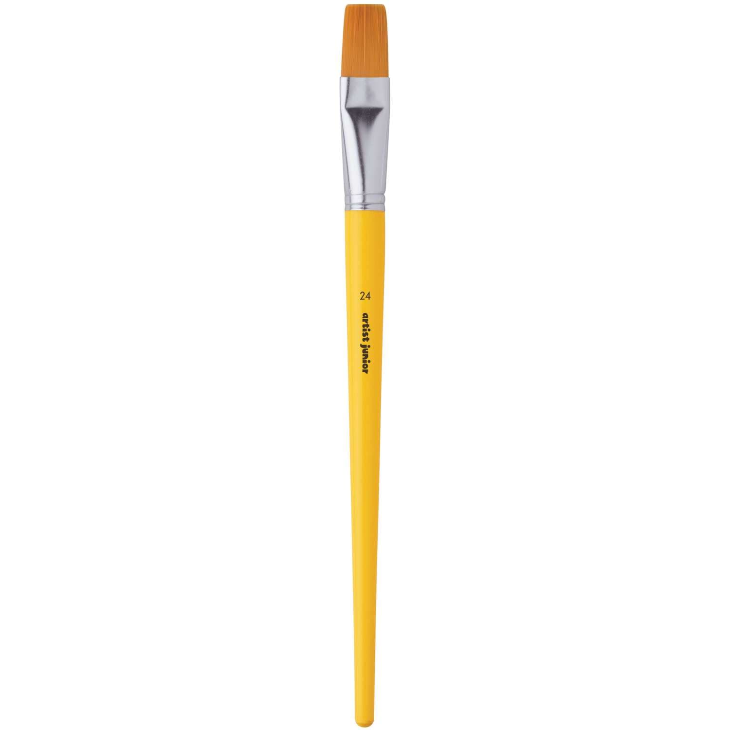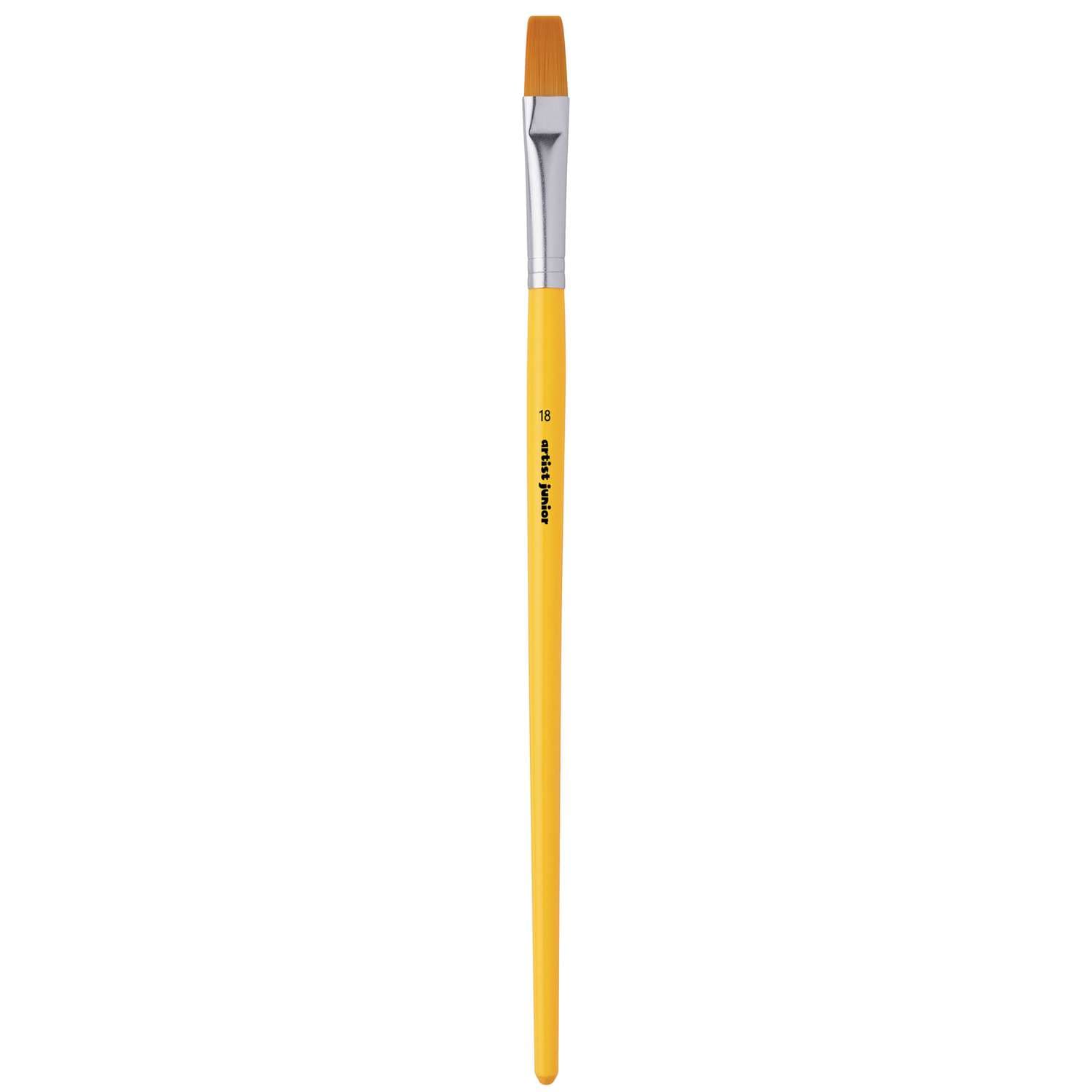 Der Artist Junior Synthetikpinsel ist für pastose Öl,- und Acrylmalerei geeignet. Die Synthetikborsten sind sauber verarbeitet, weich und elastisch. Sie werden von einer Weißblechzwinge an den gelben Holzstiel befestigt. Der Pinsel ist in 12 verschiedenen Größen lieferbar