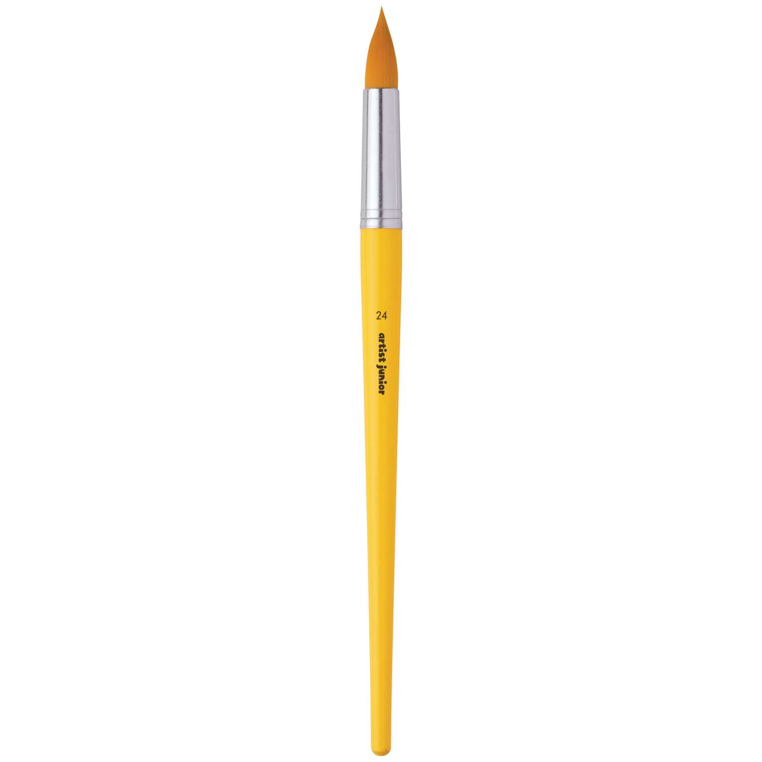 Der Artist Junior Synthetikpinsel ist für die Öl- und Acrylmalerei geeignet. Die Synthetikborsten sind sauber verarbeitet, weich und elastisch. Das besondere an den Borsten ist, dass sie oben Spitz zu laufen. Sie werden von einer Weißblechzwinge am gelben Holzstiel gehalten. Die Pinsel sind in verschiedenen Größen lieferbar.